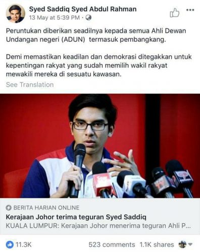 “全民老公”赛沙迪不是大家心中的完美领袖吗?他也曾经高喊朝野议员拨款必须一致性的公平,如今面对相差五倍的差别待遇,他是否应该挺身而出向希盟中央政府呛声,就像他呛声柔佛希盟政府那样。