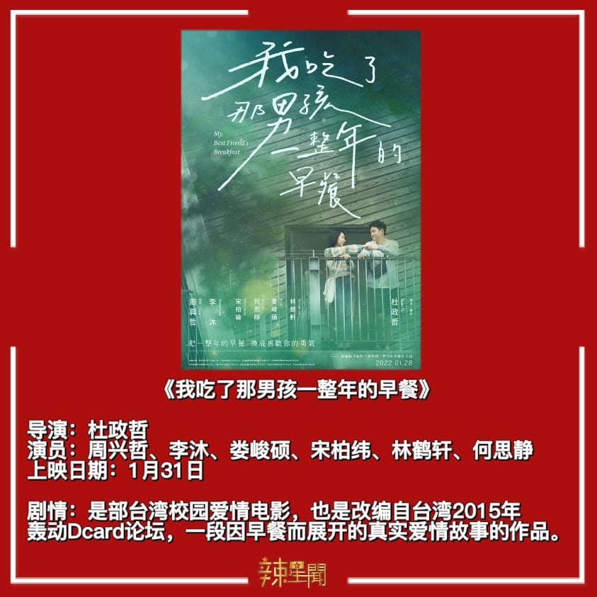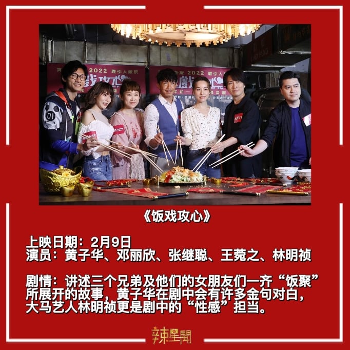 2022年大马即将上映 9部贺岁电影 25 Jan , 2022 | 娱乐前线 2022年终于可以踏进戏院看电影了!农历新年最不可缺少的其中一个环节就是看贺岁电影、也必须将去年封城的份也“看回本!” 因为疫情关系,相信很多人都许久没有踏入过电影院观赏电影,趁着这次新年和假期,大可以相约好友、闺蜜、家人一起观赏有来自本地、香港和新加坡贺岁片咯,当然也要记得继续遵守SOP,小心防疫。快往下看所有电影介绍~不需烦恼看哪部,最明智选择就是将每部都观赏一遍! 箫雪锦 整理报道 分享