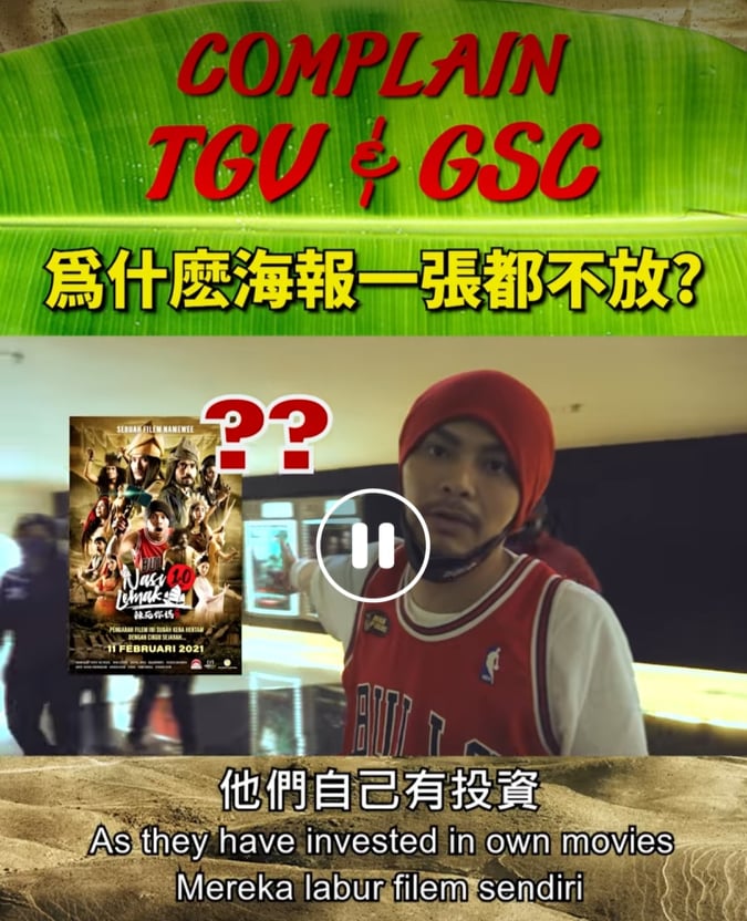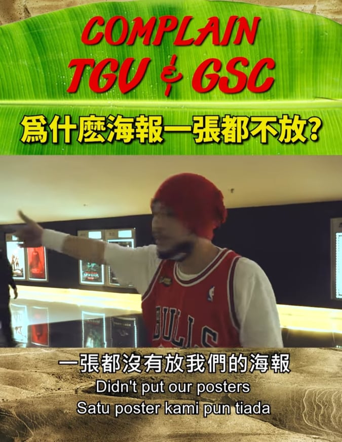 黄明志拍影片吐槽本地电影院在《辣死你妈1.0》贺岁档上映期间,一张海报都没有张贴在影院外,让他表示很心痛并愤怒指控:“GSC &TGV很不Steady“。