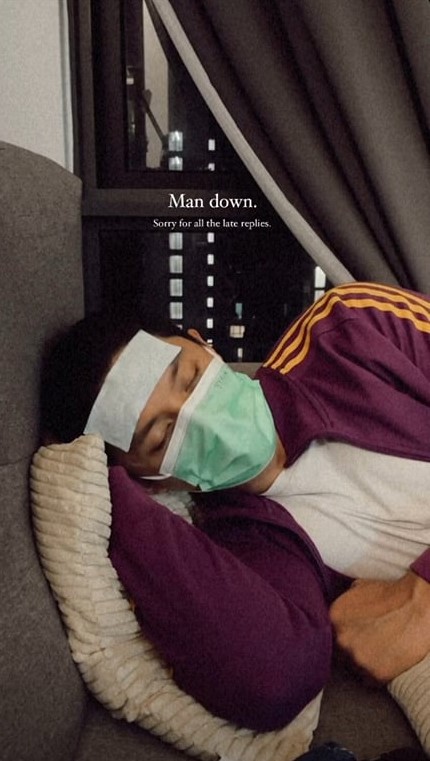 许亮宇先是在1日晚上PO出一张帅照配图写:“This photo doesn’t seem like it. But…Man down. ”接着在IG限动上传一张戴着口罩、额头上贴着退热贴的病照,状态看起来很不好。他的女友陈俐杏也在IG限动上提到,透露许亮宇是在上个月26日得知自己是密切接触者,并在27日开始自我隔离,然后在3月1日确诊。