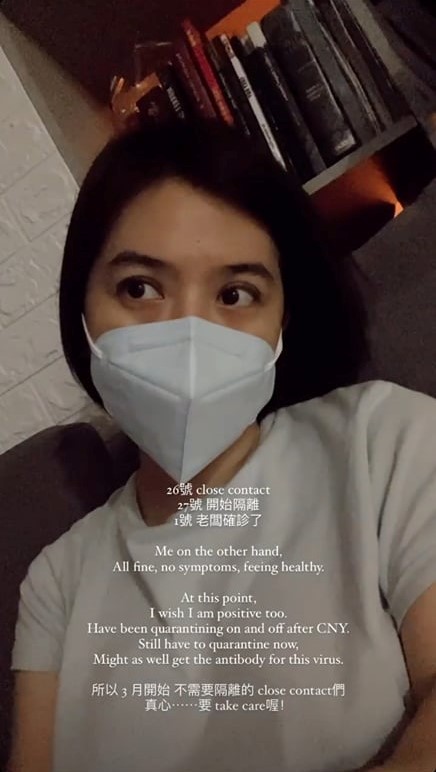 另一边的8FM DJ Hana则在社交媒体上传一段宣告确诊的影片,她强调拍这支影片的目的,是想透过自身的经历,希望相关单位能在安排确诊者与隔离事宜上做的更妥当。她指出,早前不幸确诊,但却联络不上CAC(冠病评估中心),十分忧心把病毒传染到给家中的长辈,最让她感到担心的是,家中无法隔离,也找不到可以隔离的酒店,令她只能躲在储藏室自我隔离。