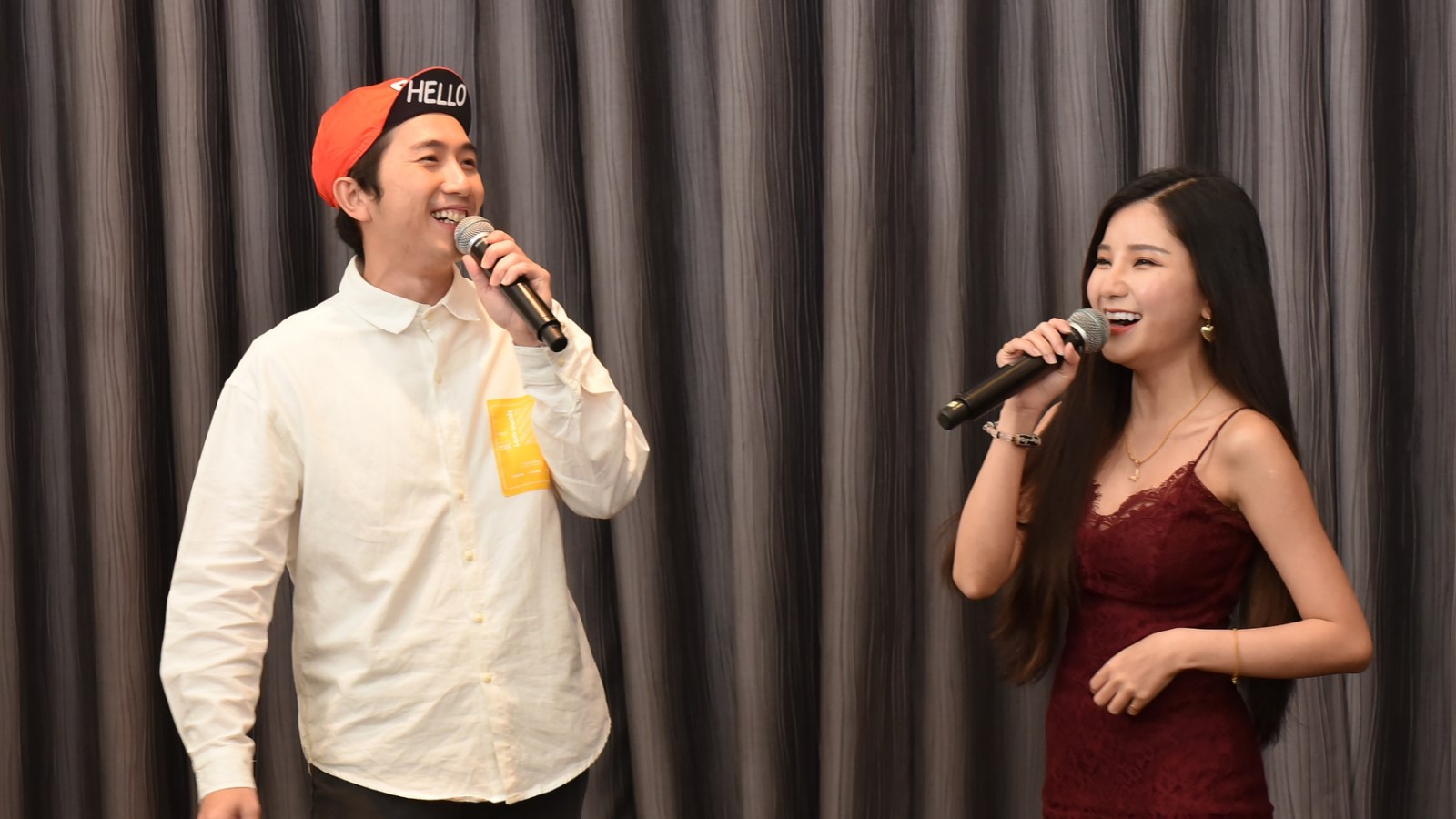 (右图)Daniel 黄震宇和郭伊雯记者会上不约而同穿上白色衣服,站在一起时意外地登对。