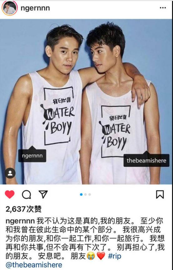 亲友们和粉丝得知恶耗后也涌入他的IG哀悼,曾和他有过合作的男星ngernnn上传3张合照,哀悼Beam的意外离世,ngernnn的言语透露对他的不舍,怀念之前一起拍戏的美好时光,他还期待后续能够和Beam一起合作,但可惜没有机会了,成为了遗憾。