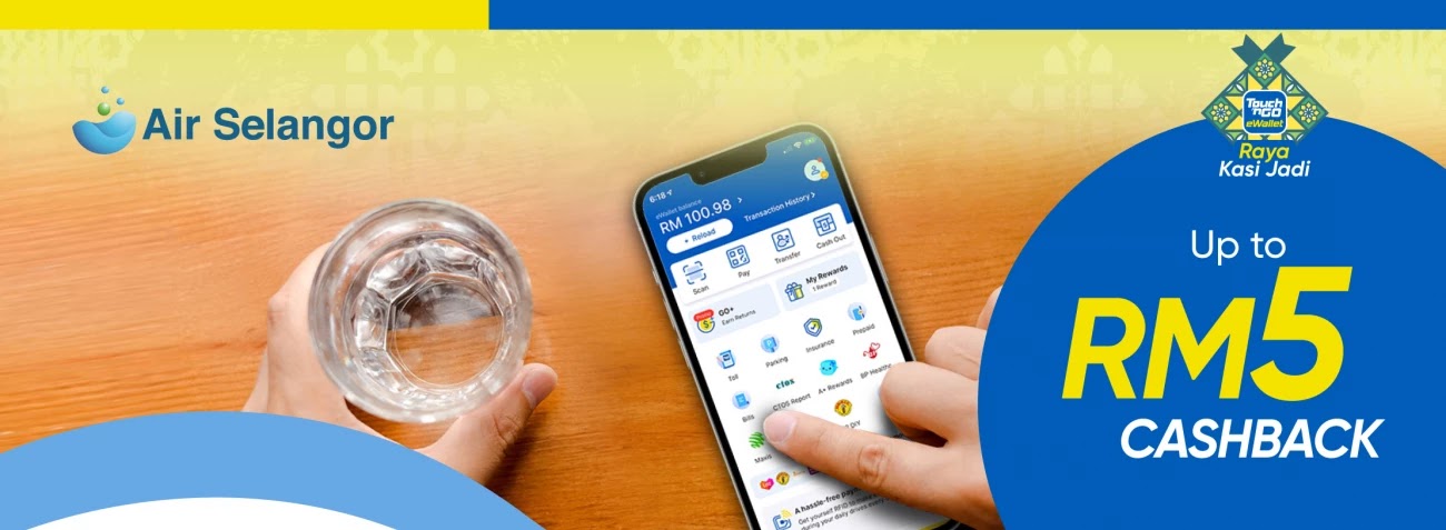 Touch’n Go 电子钱包和Air Selangor合作推出现金回扣!在指定期限内,使用Touch’n Go 电子钱包来缴付 Air Selangor水费单,将可获得RM5现金回扣!这项优惠从即日起至6月30日推出,分成三个阶段进行!每个阶段都只限特定数量的用户可享有现金回扣!