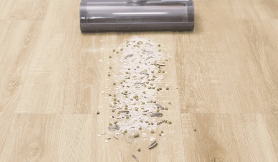 但双滚刷配置的前后刷只需一次性就能快速解决灰尘垃圾问题,这个对比非常明显,超强的吸尘效果让人非常惊喜又满意。