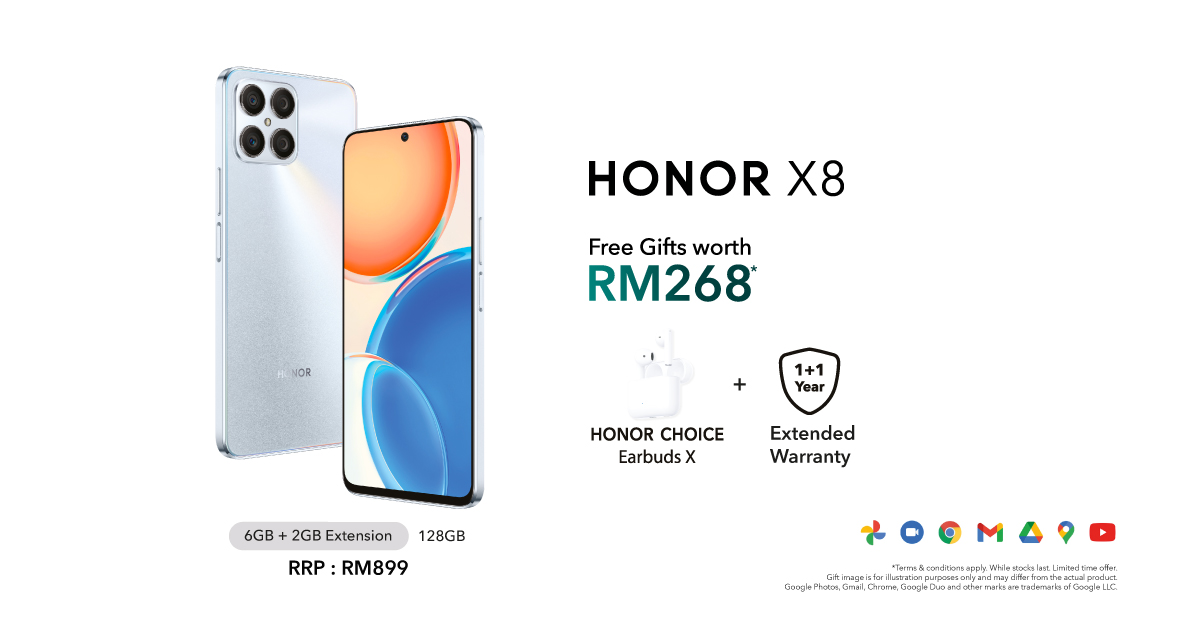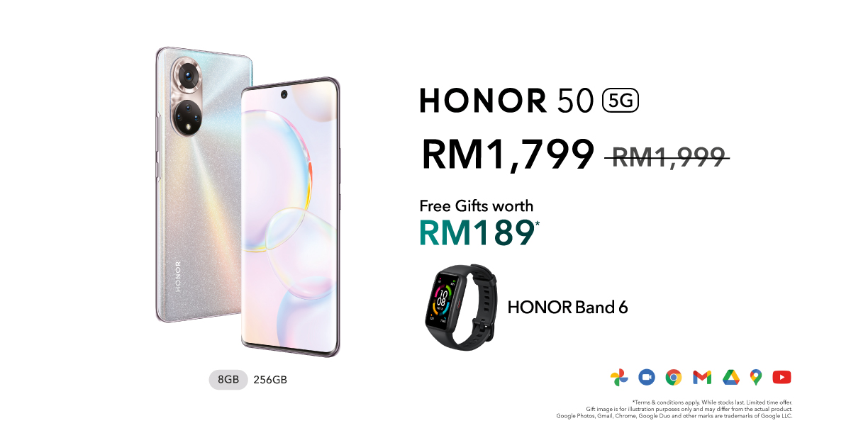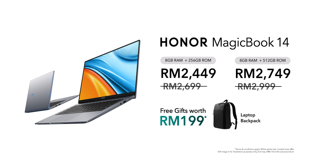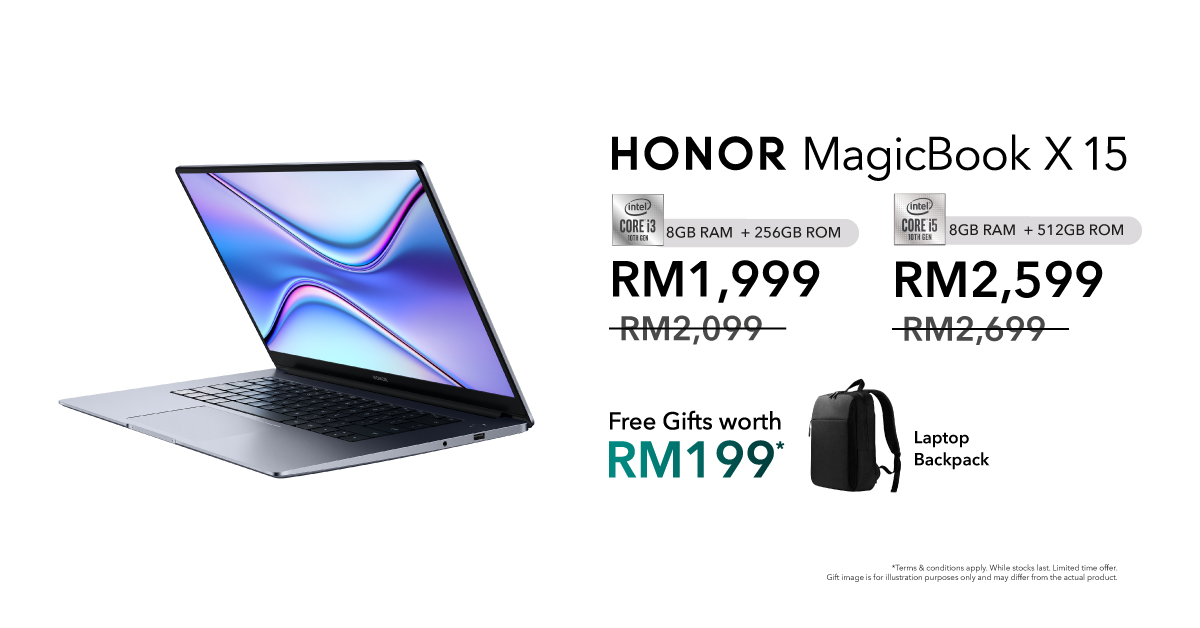选购HONOR X系列手机最低只需RM699,其他好康优惠也包括HONOR 50售RM1,799,并附送HONOR Band 6,以及HONOR MagicBook 14折扣高达RM250等。