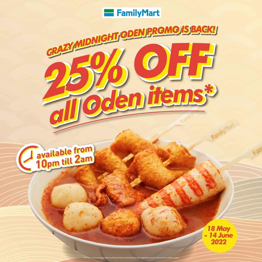 Family Mart 关东煮有折扣 19 May , 2022 | 吃喝玩乐 Family Mart 关东煮有折扣,喜欢吃的朋友不要错过! 夜宵有着落了,Family Mart 全场关东煮将提供高达25%的折扣!从即日起至6月14日,Family Mart 将推出Crazy Midnight Oden超值优惠!你只要在指定的时段(10pm至2am)购买,即可享有!喜欢吃的朋友,千万不要错过咯! 分享