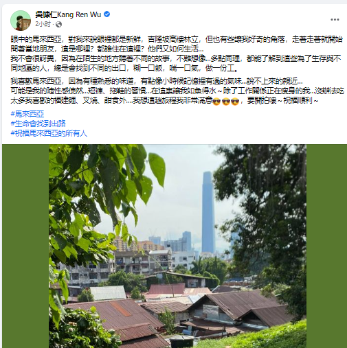 台湾金钟视帝吴慷仁目前在大马拍摄《富都青年》,今天突然在脸书感性发一段文,表示自己真的很喜欢马来西亚:”我喜欢马来西亚,因为有种熟悉的味道,有点像小时候记忆里有过的气味…说不上来的亲近…“。