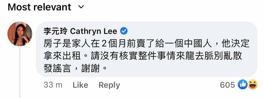 日前,有眼睛的网友在网站上看到房子中介所放租的豪宅正是李元玲曾公开过的住所,月租价钱高达RM60K,让网友一度以为她一直以来都是在租豪宅住,不过这个消息很快就遭到她本人澄清表示:“房子是家人在2个月前卖给了一个中国人,他决定拿出来出租”。