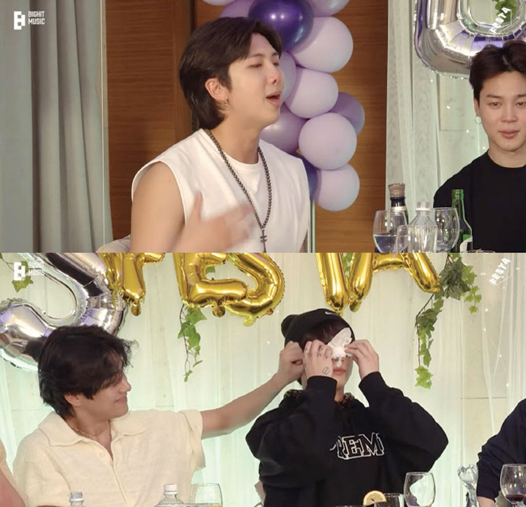 RM回忆一路走来不敢停下脚步休息,“担心被大家讨厌,好像犯了罪一样..其他成员也有同样的想法,所以我们从论岘洞小小的地方,走到了白宫,都写进《Yet To Come》(这次主打歌)的歌词,这个版本是我认为宇宙最好的版本。我依然想去做,守护想守护的东西,我们一起真心站在舞台上,聚餐谈论时,不需要任何规则,幸福地交谈,幸福地做着我们能做的事,这就是我希望的”。RM讲到一半哽咽,柾国、J-HOPE也忍不住流下眼泪。