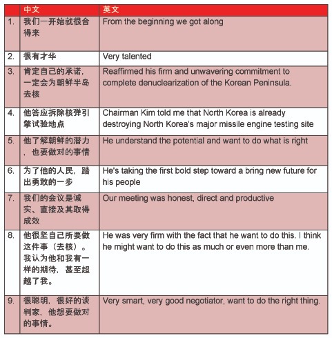 特朗普狂Like金仔 12 Jun , 2018 | 民生关注, 精选新闻 (吉隆坡12日讯)美国和朝鲜在新加坡举办历史性峰会,并且签署一项有关朝鲜去核的双边协议。 美国总统特朗普在会后的记者会上对金正恩也是“只赞不弹”,非常正面。 让我们来听听,特朗普究竟怎样说? 分享