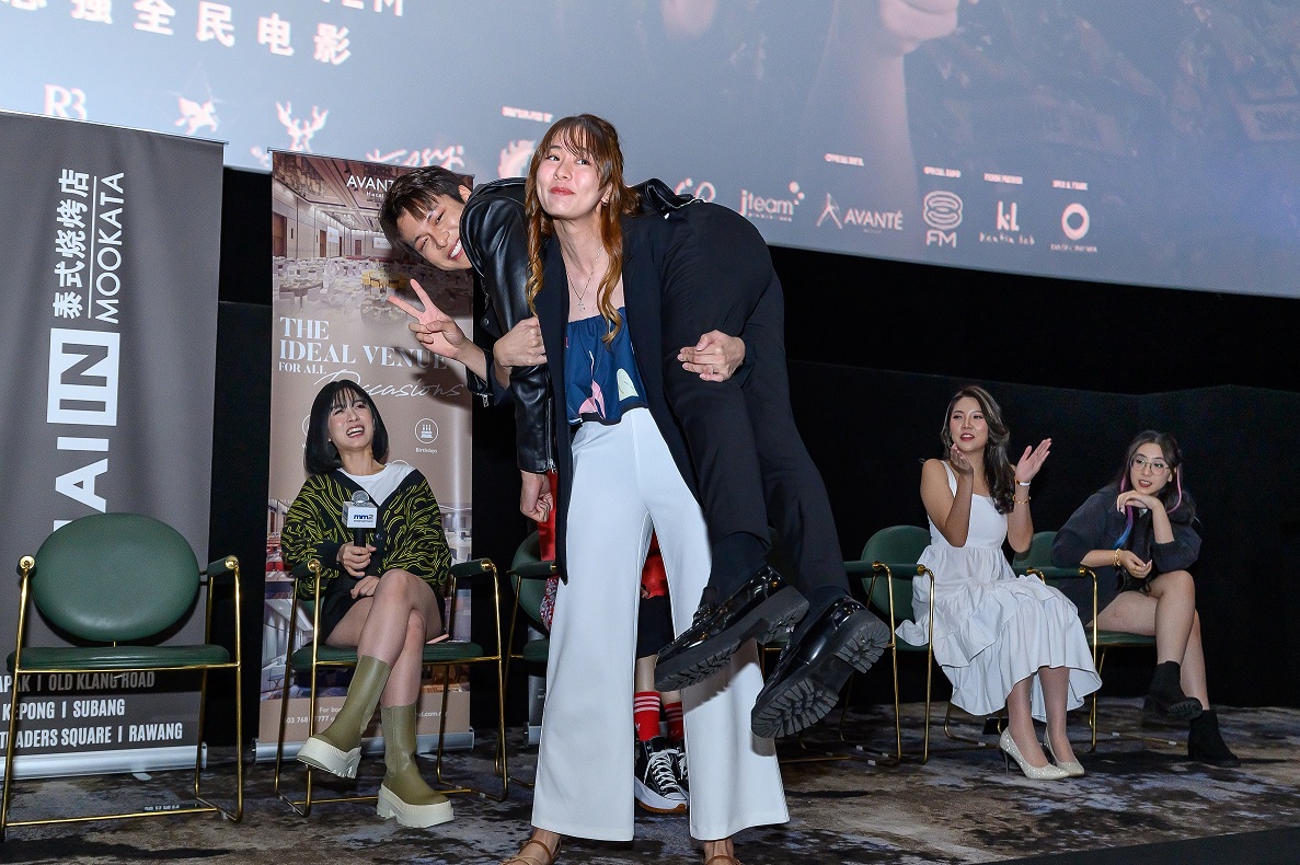 到了当晚首映礼,自认英文很烂的Ke Le阳光可乐,不但在现场被林茜茜纠正英文咬字之外,还被梁导夸说她很爱抢戏。她阳光般的性格, 非常让人讨喜,现场她还大显身手,秀出一身“好功夫”来个一字马,这举动让现场观众及演员们尖叫连连。再问到梁导对马新票房的期待,梁导则寄望Ah Girls 的票房能像 Ah Boys《新兵正传》系列一样完美收官。