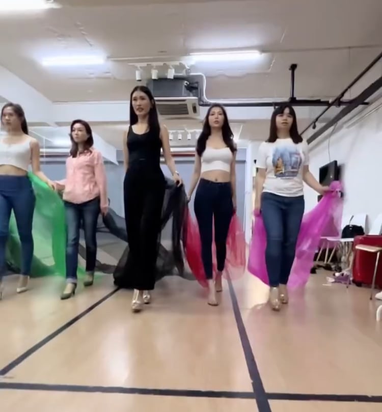 大马名模谢丽萍(Amber Chia)在IG上传一众亚姐跟她学走猫步的照片和视频并写道,“阿仪第一次穿5寸半的高跟鞋走猫步,好犀利。加油。”影片中可见阿仪走得战战兢兢,但也非常努力用心。她20日在大马SS2吃榴梿时顺便逛夜市,还买了马来西亚吉隆坡纪念T恤。