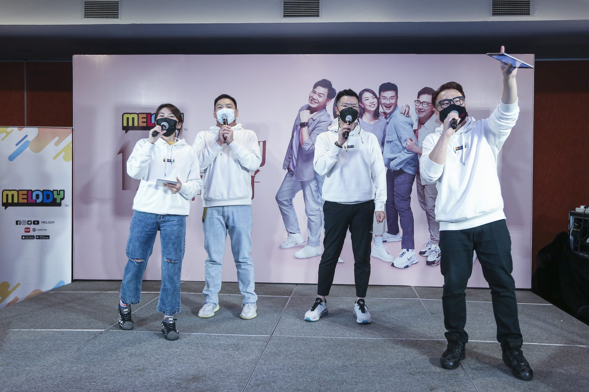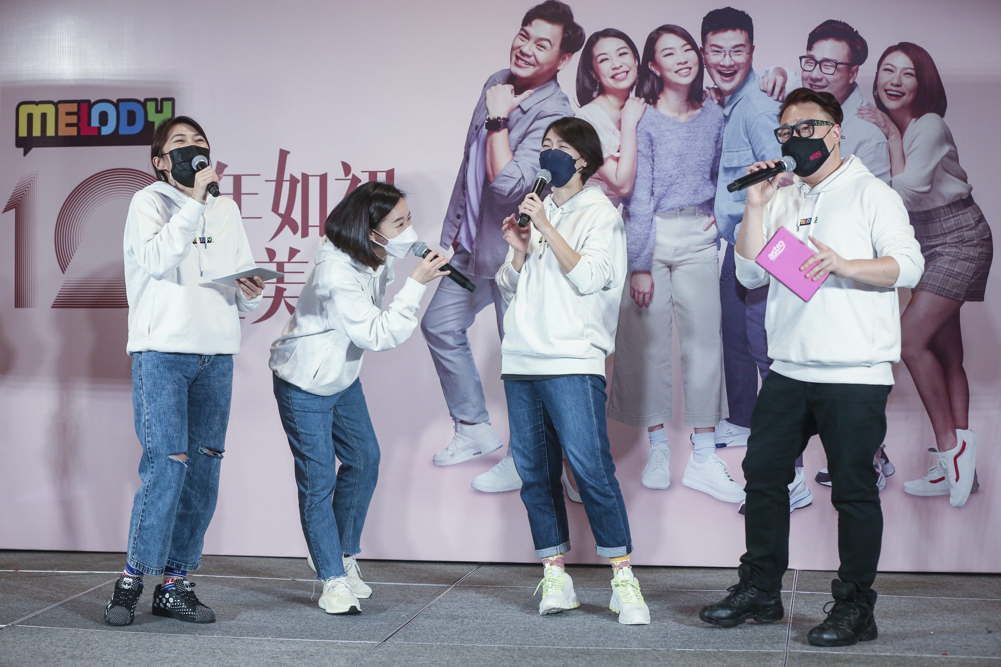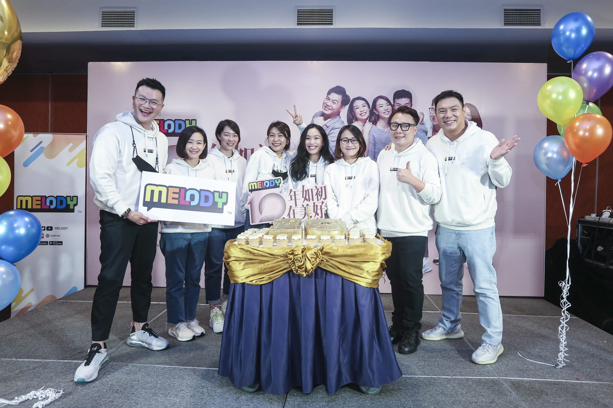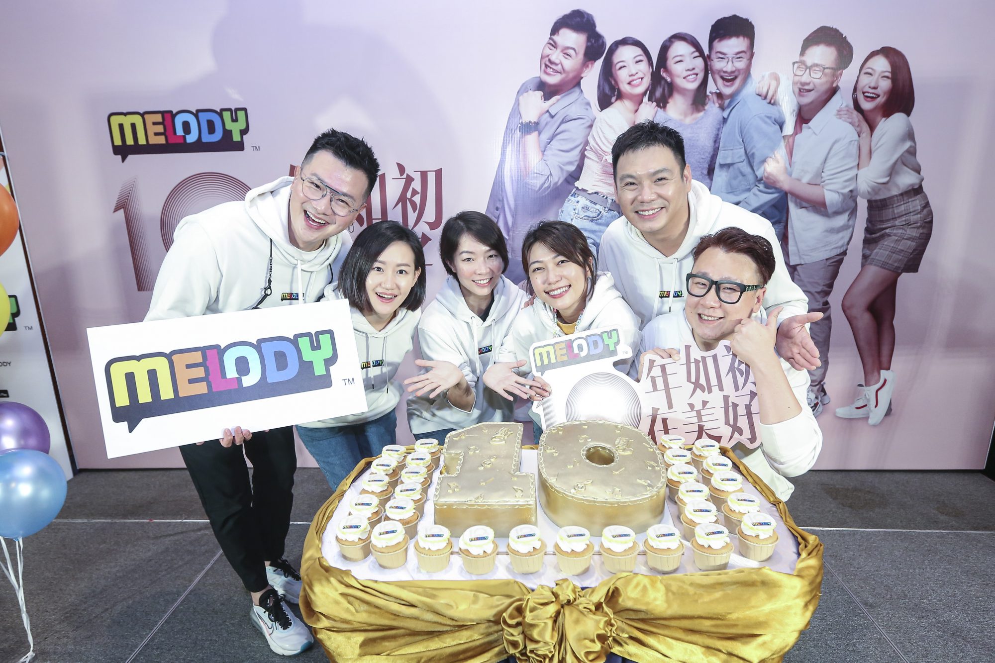 MELODY电台今日举办10周年台庆记者会,出席DJ及艺人有:Jentzen林震前、Vivienne 温慧茵、云镁鑫、Nicholas翁书尉、William辛伟廉及黄毓敏。