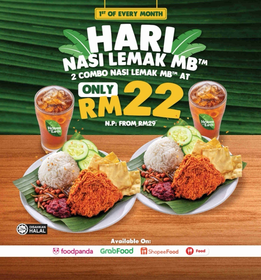 Marrybrown 限时推出套餐促销 两份只需RM22 1 Aug , 2022 | 吃喝玩乐 Marrybrown 将在8月1日推出Hari Nasi Lemak促销!在这天购买两份Nasi Lemak MB Combo只需RM22,平均一份只需RM11!套餐内包含了炸鸡、白饭、鱼饼、椰浆、黄瓜和饮料! 其实,Marrybrown 在每个月1日都会推出两份套餐RM22的促销!如果你无法在8月1日这天享有,也可以选择在9月、10月、11月去购买Nasi Lemak MB Combo! 分享