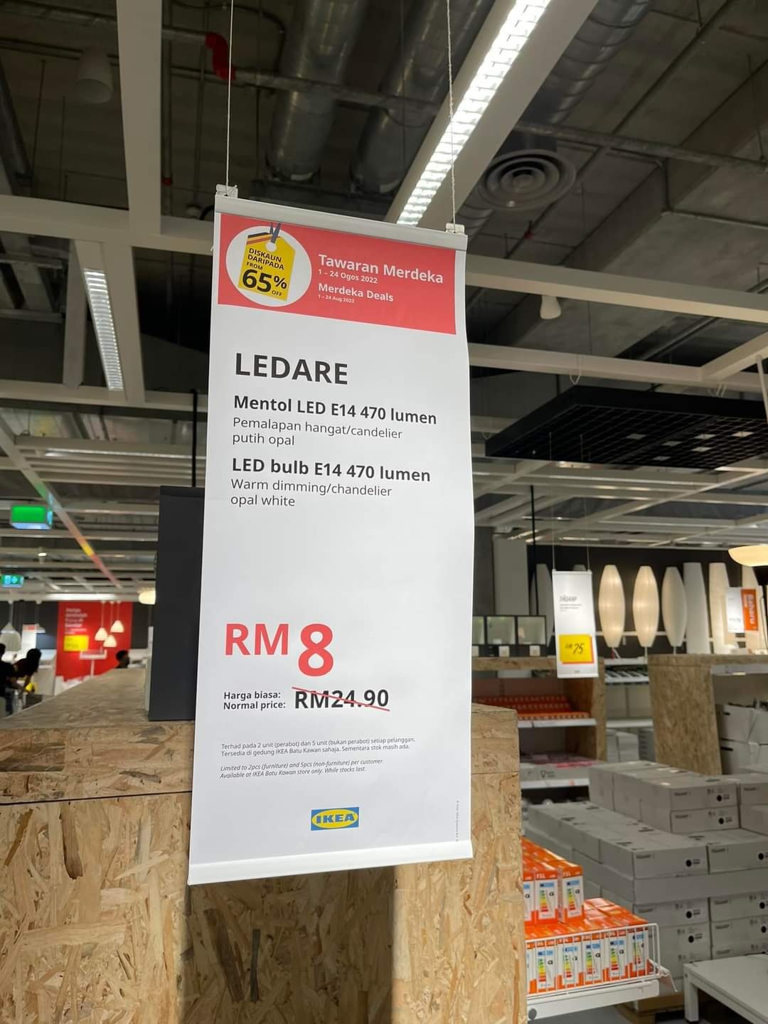 IKEA国庆推出促销 全场最低只需RM1 3 Aug , 2022 | 吃喝玩乐 IKEA给你一个“翻新”的机会!为迎接国庆日的到来,IKEA限时推出促销活动,提供高达65%的折扣! 每年的8月31日是马来西亚的国庆!配合节日的到来,IKEA限时推出促销活动,全场最只需低RM1就能买到!最近打算换家私、餐具的朋友,记得不要错过!这次推出的折扣高达65%,真的很多阿! 这项促销活动,从即日起至8月24日在IKEA举办! 分享