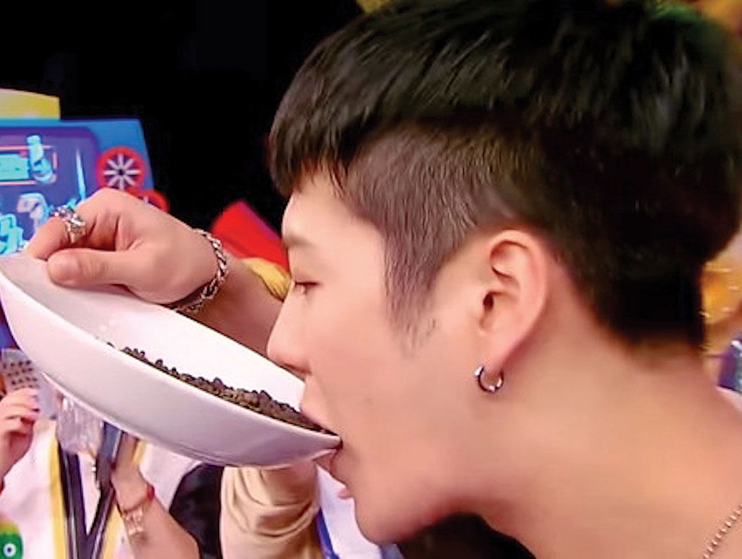 而2016年陶晶莹主持的中国节目《大学生来了》中,制作单位准备蝙蝠、兔子及蚕的“粪便”让韩团“GOT7”成员王嘉尔品尝,王嘉尔面不改色一口吃下去,让现场惊呼连连。但事后节目有表示粪便有经过老中医处理,是中药材,但该食物的原型仍是大便。