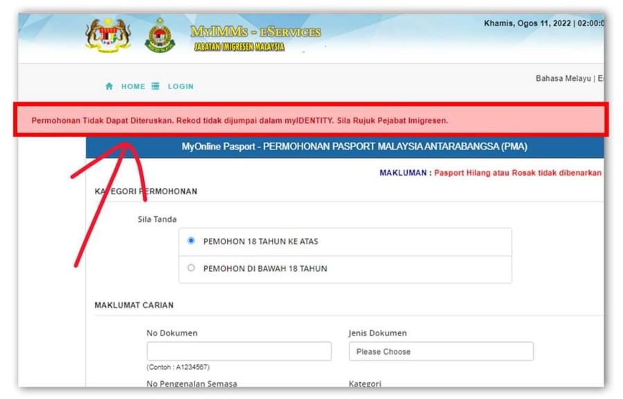 (3)如果成功进入到更新护照的页面代表你的护照正常;如果出现红色提示框,请前往移民局询问