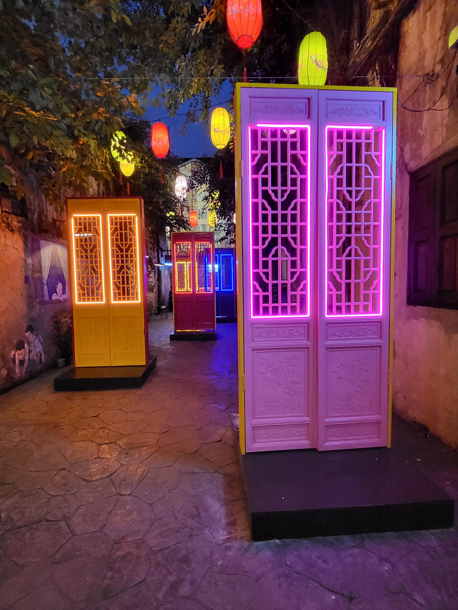 为了配合这个主题,明亮的“Moonlit Doors”占据整条巷弄,带领人们通往满月装置!门框的颜色为传统的外观增添了一丝变化!
