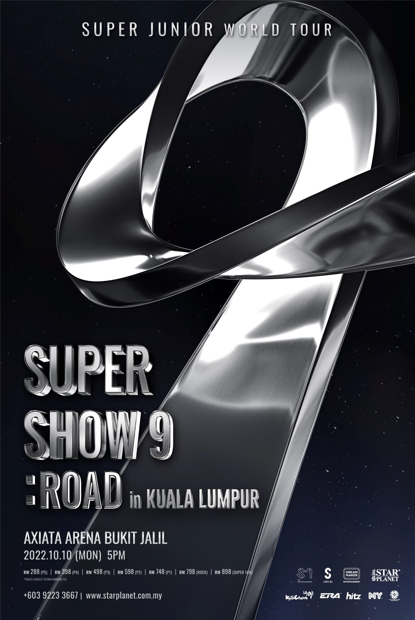 由Star Planet星艺娱乐主办,《Super Show 9:ROAD ─吉隆坡站》将在10月10日,下午5PM唱响武吉加里尔亚通体育馆(Axiata Arena),这也是Super Junior 阔别将近9年后,再度合体来马开唱。