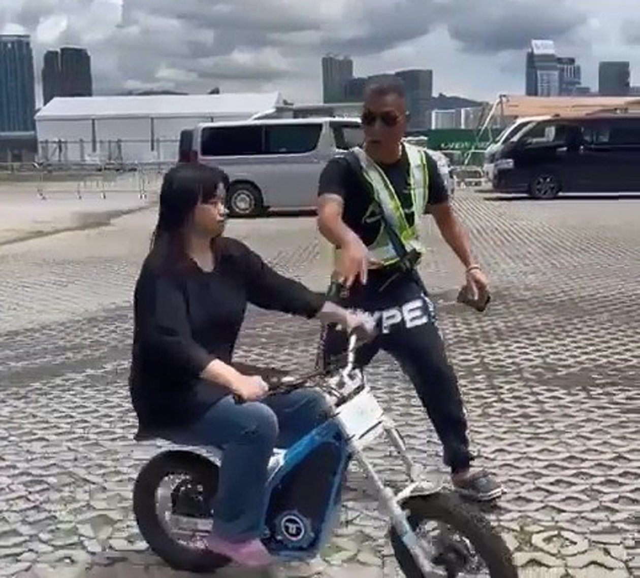 港岛总区交通部执行及管制组特遣队早前于网上留意到一段视频,片中一名女子在中环海滨活动空间驾驶一辆摩托车,当时该女子没戴上防护头盔,该摩托车亦涉嫌为未有登记车辆。