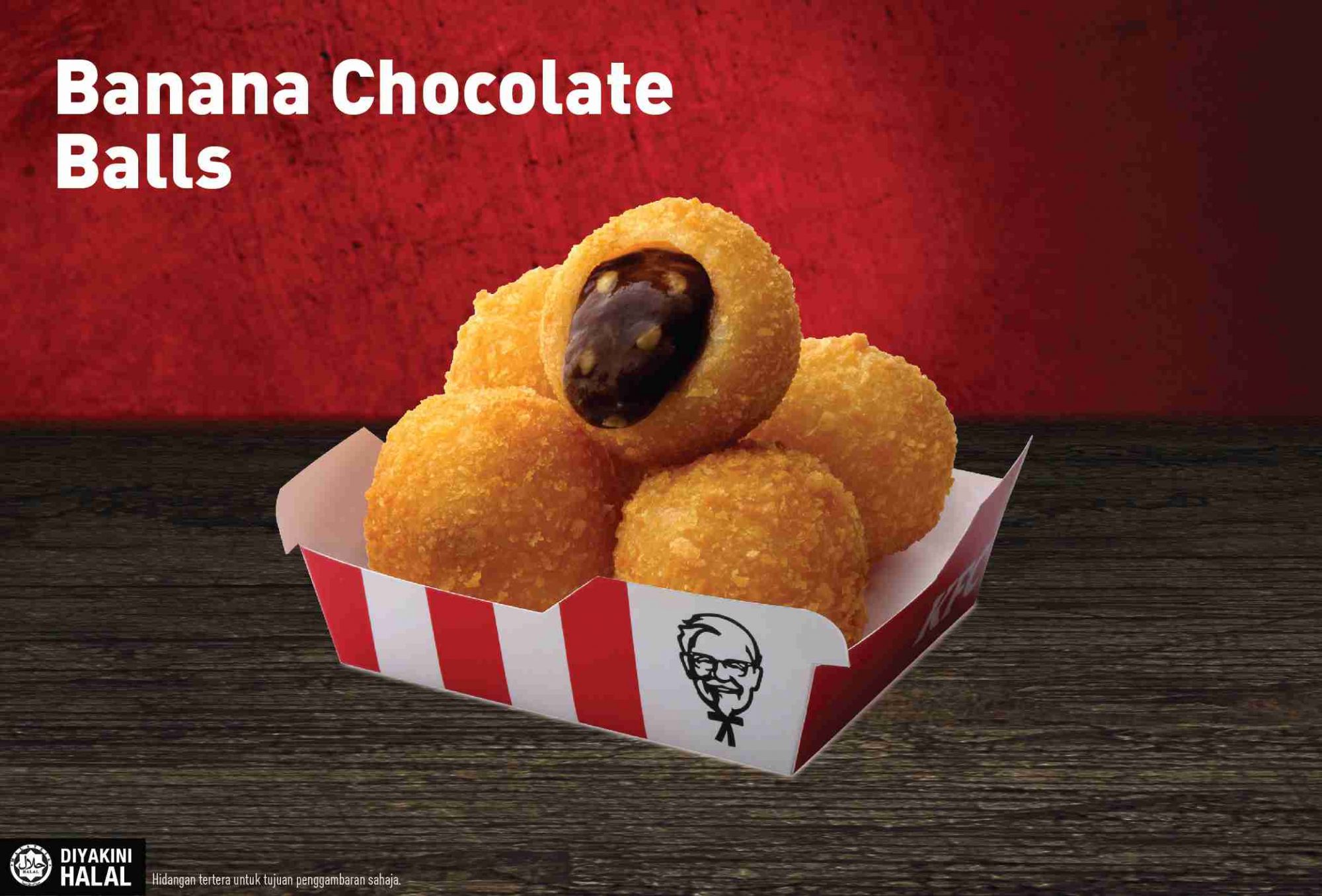 此外,肯德基也推出了全新甜点KFC Banana Chocolate Ball!香甜的香蕉果肉和巧克力馅料,以嚼劲十足的糯米皮包裹后裹上金黄香脆面包糠,让你在享用了烟熏和香辣的一餐后,味觉上有焕然一新的感觉!