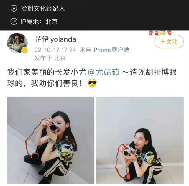 刘恺威和尤靖茹牵手逛街的消息流传后,尤靖茹的经纪人火速辟谣,“我们家美丽的长发小尤~造谣胡扯博眼球的,我劝你们善良!”,经纪人强调尤靖茹是长发和网友所拍到的照片女子不同。
