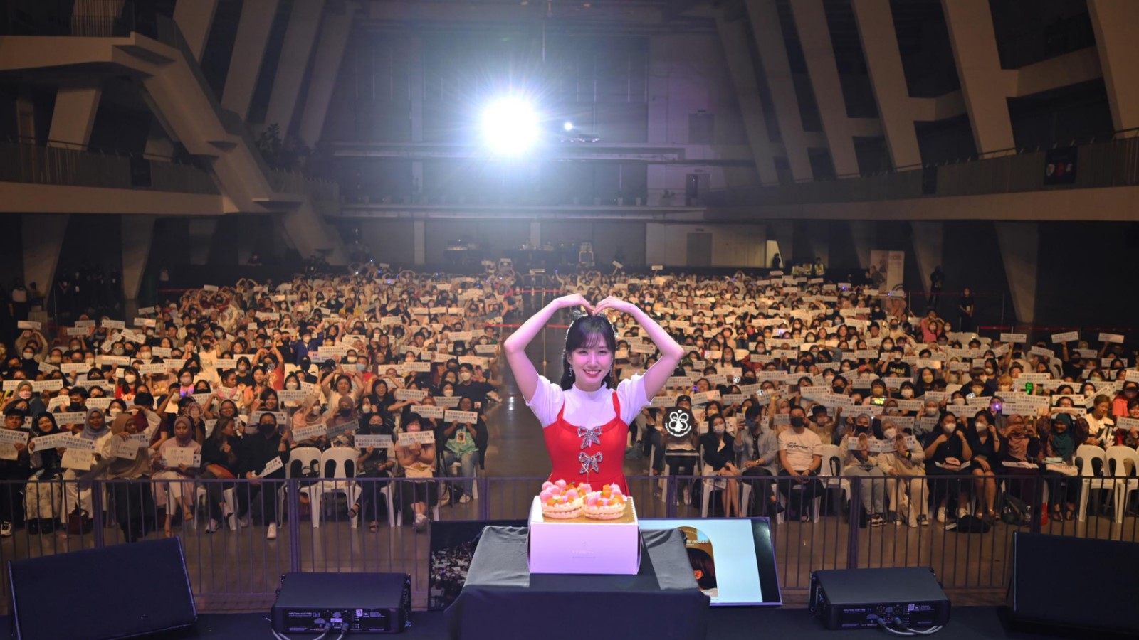 接近尾声,粉丝送上精心制作的影片以及马卡龙蛋糕,她忍不住开心喊:“看起来很好吃!”大家亦演唱圣诞歌送她。 她眼眶泛泪说:“Aku cinta padamu ”,更感激说:“很感恩自己成为一位演员,拥有了特别又美好的人生。是你们的爱和支持让我能够站在这里,希望未来还能见到大家。”她还现场教学大家说韩语的“我爱你”。