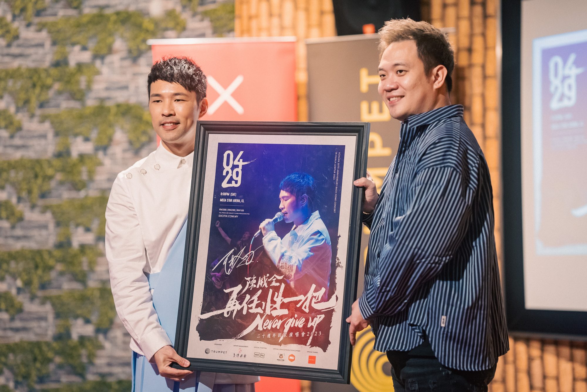 【记者会】大马音乐才子陈威全出道20年终于回到“家乡”马来西亚办演唱会,曾为多位大咖歌手创作出多首名曲被主持人称是大马“国宝”级歌手,陈威全本人也表示“很享受当国宝”,被问及这是想挑战光良国宝的地位吗?他笑言“我们可以一起当国宝”。