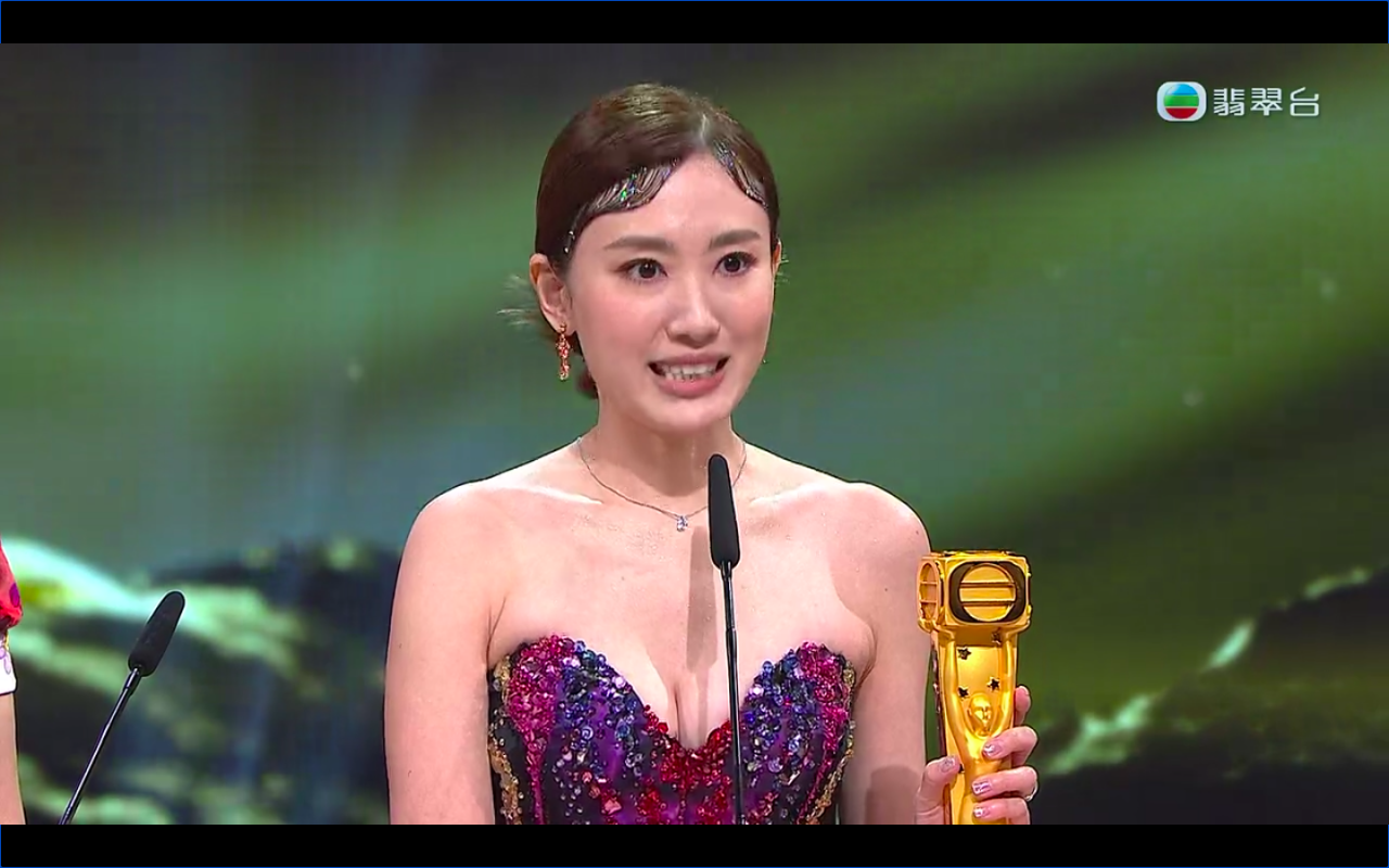 江美仪上台时激动得爆哭大胆说“我以为不是亲生女不能拿这个奖!”颁奖者三哥苗侨伟则在旁调侃“现在有高层曾志伟在很公平了”。新出炉视帝陈山聪一人在《金宵大厦II》中分饰多角,他上台时忍泪告白:“非常感恩,在我的人生马拉松里面,最困难不是失败,是怎样失败再站起来步向成功,今天我要对这十年帮过我的人说,我终于可以踏进成功这一步,感谢《金宵大厦》I&II所有人员,也感谢李施嬅,她今天为了我特地回来。”他也特别感谢在我最失败的时帮过他的曾志伟、曾励珍和乐易玲。