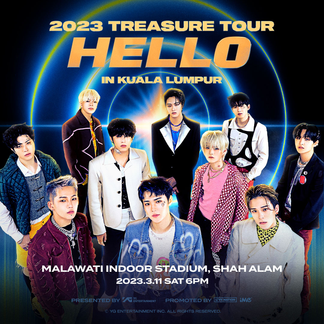 YG Entertainment旗下男团TREASURE确定来马办《2023 TREASURE TOUR [HELLO] KUALA LUMPUR》演唱会,日期落在3月11日傍晚6点,于莎阿南美拉瓦蒂室内体育馆(Malawati Indoor Stadium)举办。