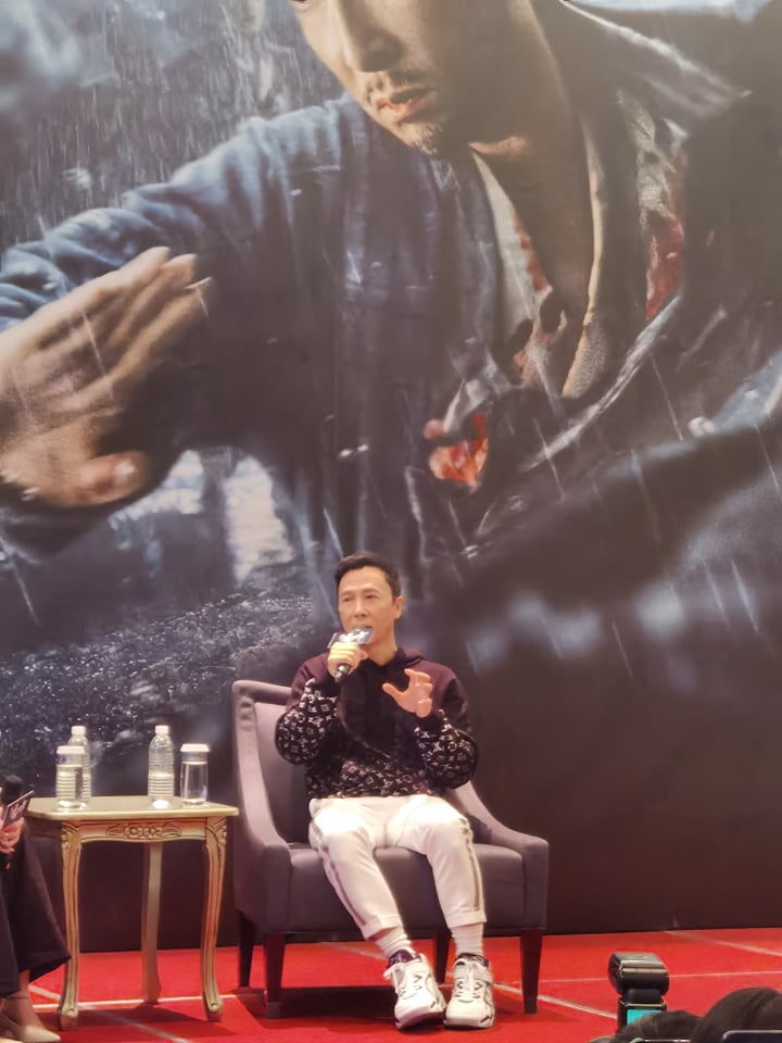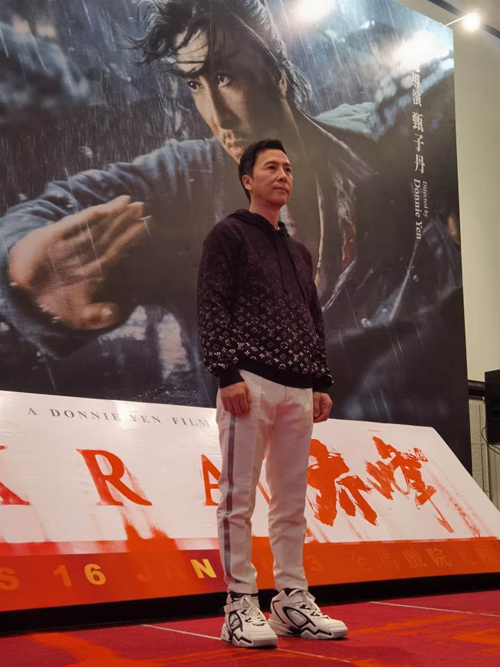 【记者会】“宇宙最强”甄子丹(丹爷)来马为他自身监制、执导和主演的电影《天龙八部之乔峰传》宣传。身兼多职的他透露拍摄《天龙八部之乔峰传》期间精神压力非常大,除了身体上的伤,更多的是“慢性折磨”,比如腰和颈椎上的疼痛,甚至敬业的他一天最多只睡5小时。