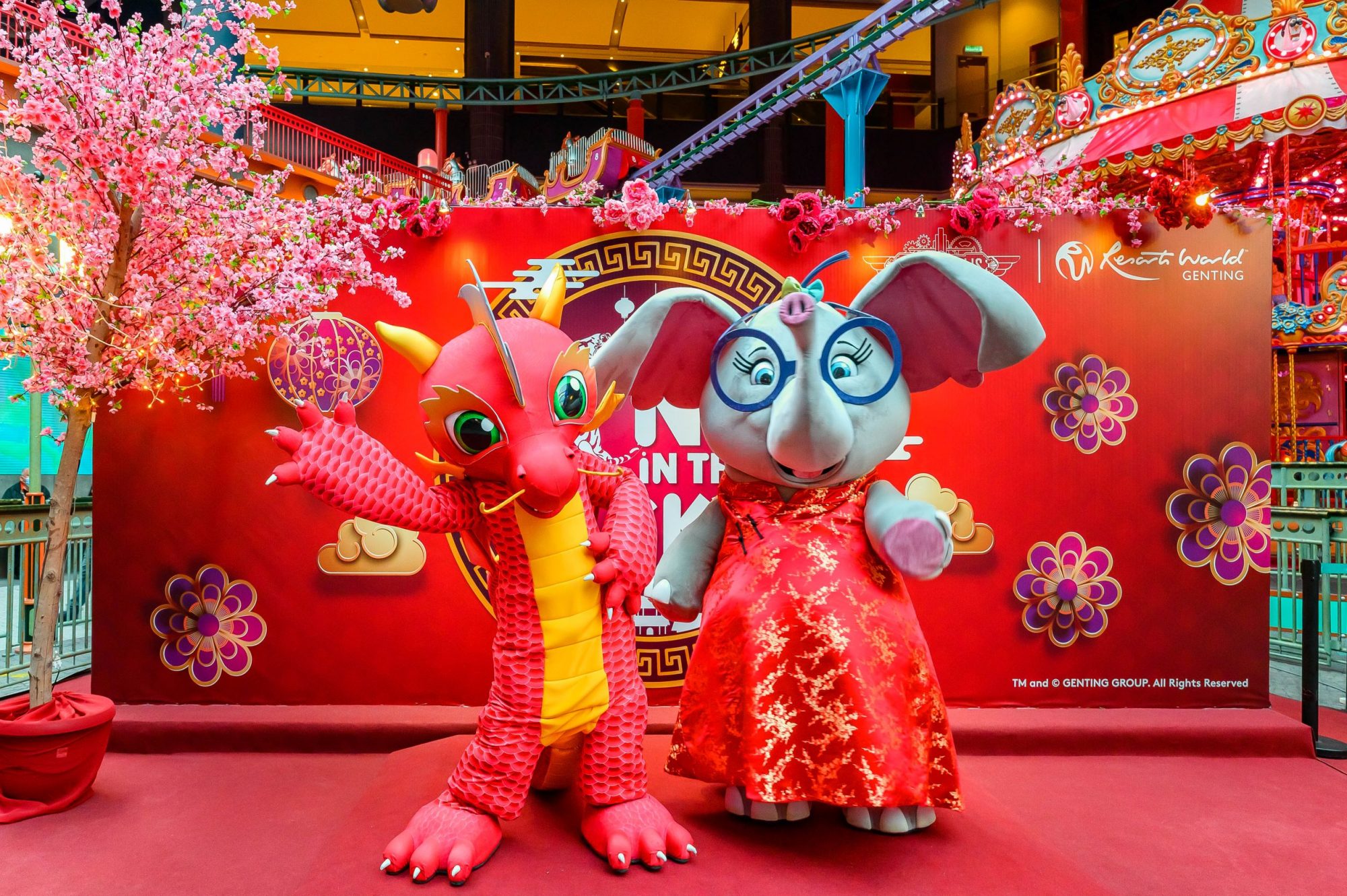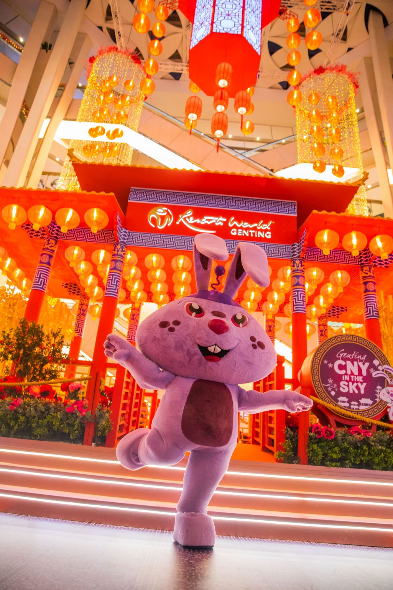 红彤彤的灯笼、典雅的梅花点缀着度假村的各角落——金花庭(Kimhua Atrium)、梧桐再也大道(Gohtong Jaya Baru)、天城室内游乐园(Skytropolis)、中央公园(Central Park)以及麦迪孙广场(Madison Square)皆洋溢着新春气息。在金花庭与可爱的兔子生肖装饰合影或是仰望耸立于麦迪孙广场的9米高的黄金树,为这佳节留下一个美好的回忆。