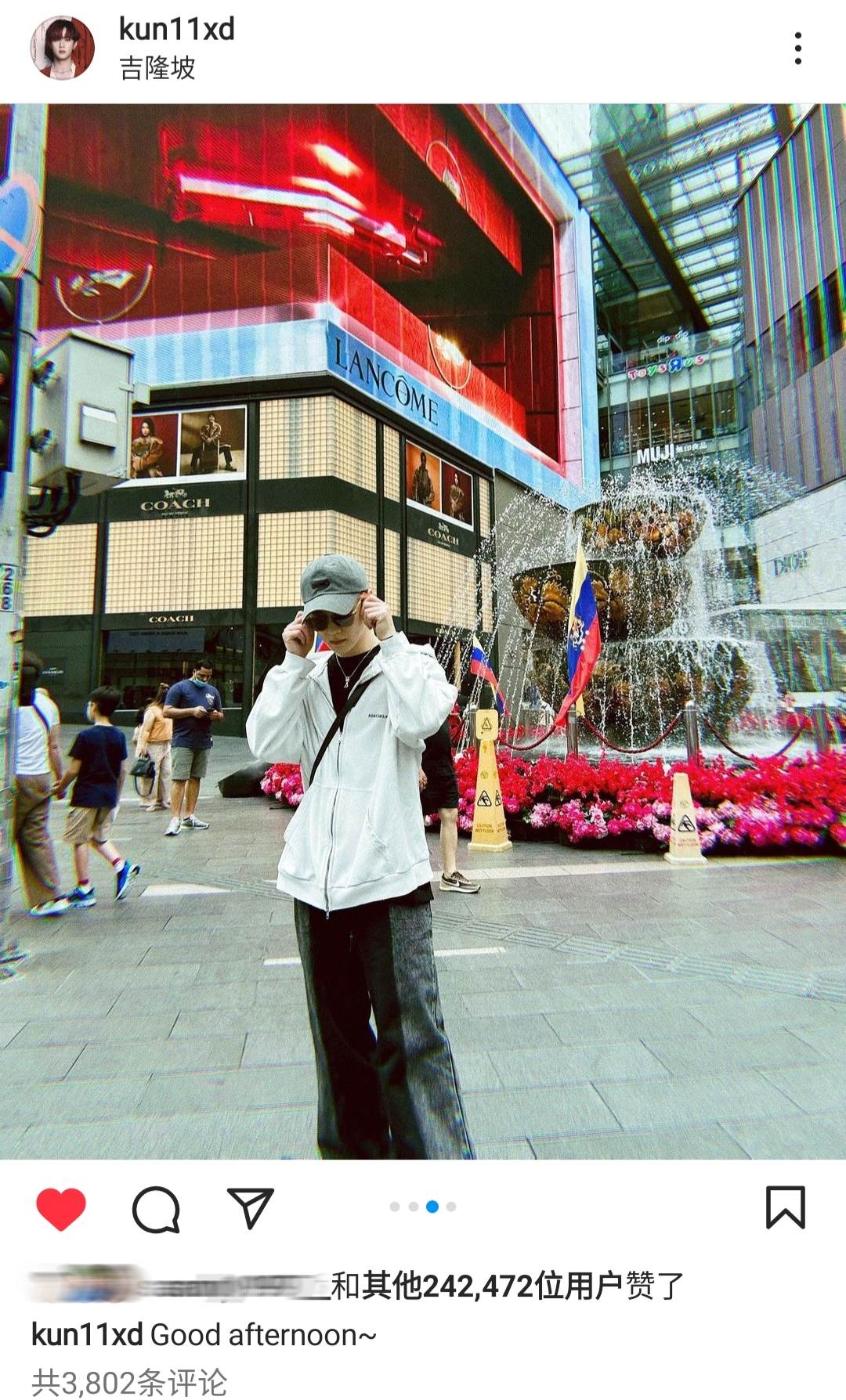 而今日WayV的KUN与NCT DREAM 的辰乐就抢先晒出在Pavilion KL打卡的新鲜照,两人的贴文引起粉丝讨论,纷纷前去“圣地巡礼”打卡同款地点照片,希望能偶遇爱豆。随后KUN也在IG动态分享透露自己准备去场馆彩排。期待大家今晚的精彩演出,同时希望成员们都能好好享受这趟大马之旅。