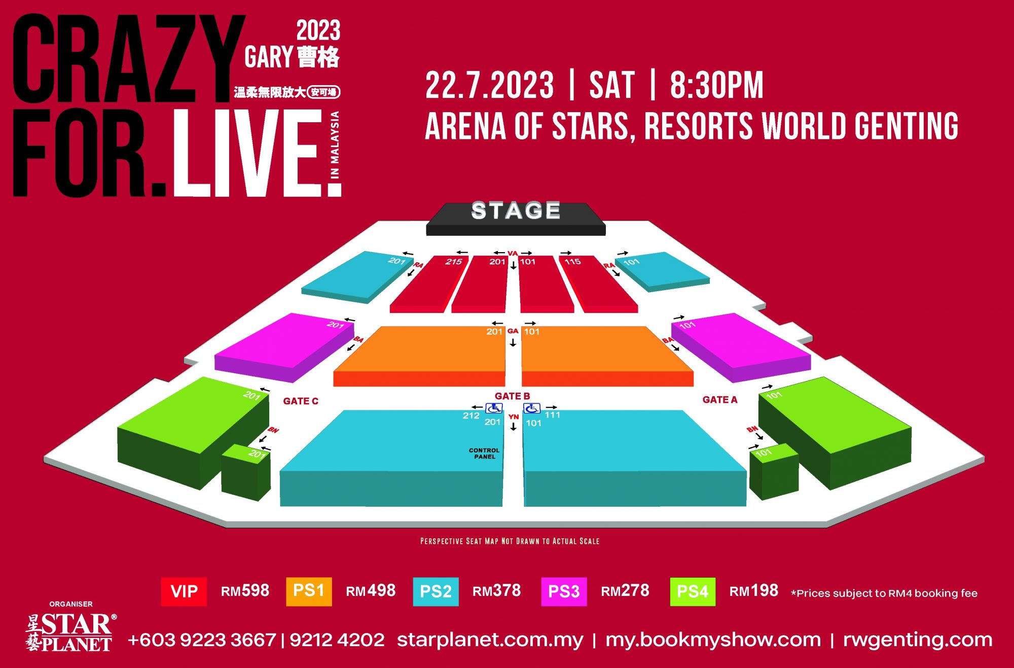 曹格《Crazy for LIVE –温柔无限放大》马来西亚-安可场7月22日,晚上8点30分,在云顶云星剧场开唱。门票分别为RM598,RM498,RM378,RM278及RM198 (未含4令吉手续费)。门票将于4月21日,下午2点正式全面公开发售,首800张门票将获得10% 折扣优惠,先到先得至售完为止。