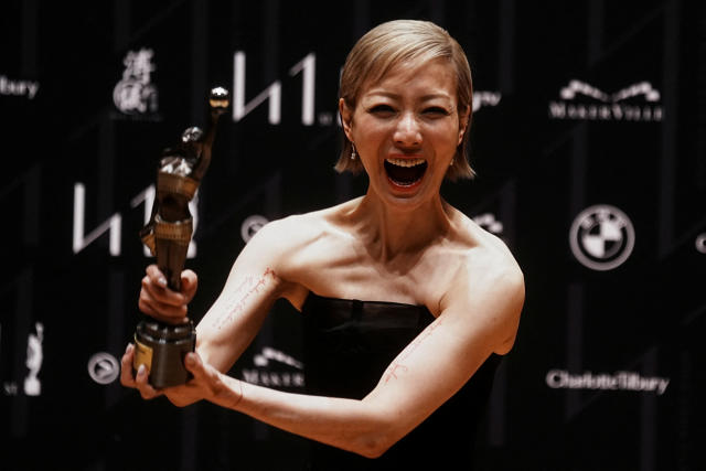 《第41届香港电影金像奖》于16日晚圆满结束,郑秀文终于凭借电影《流水落花》拿下影后殊荣。当她站在颁奖台上,接过刘德华送上的奖座时,激动地与他拥抱,并高声欢呼,而镜头正巧拍到坐在台下的古天乐,不断用手擦掉眼泪,情绪看起来也颇为激动。