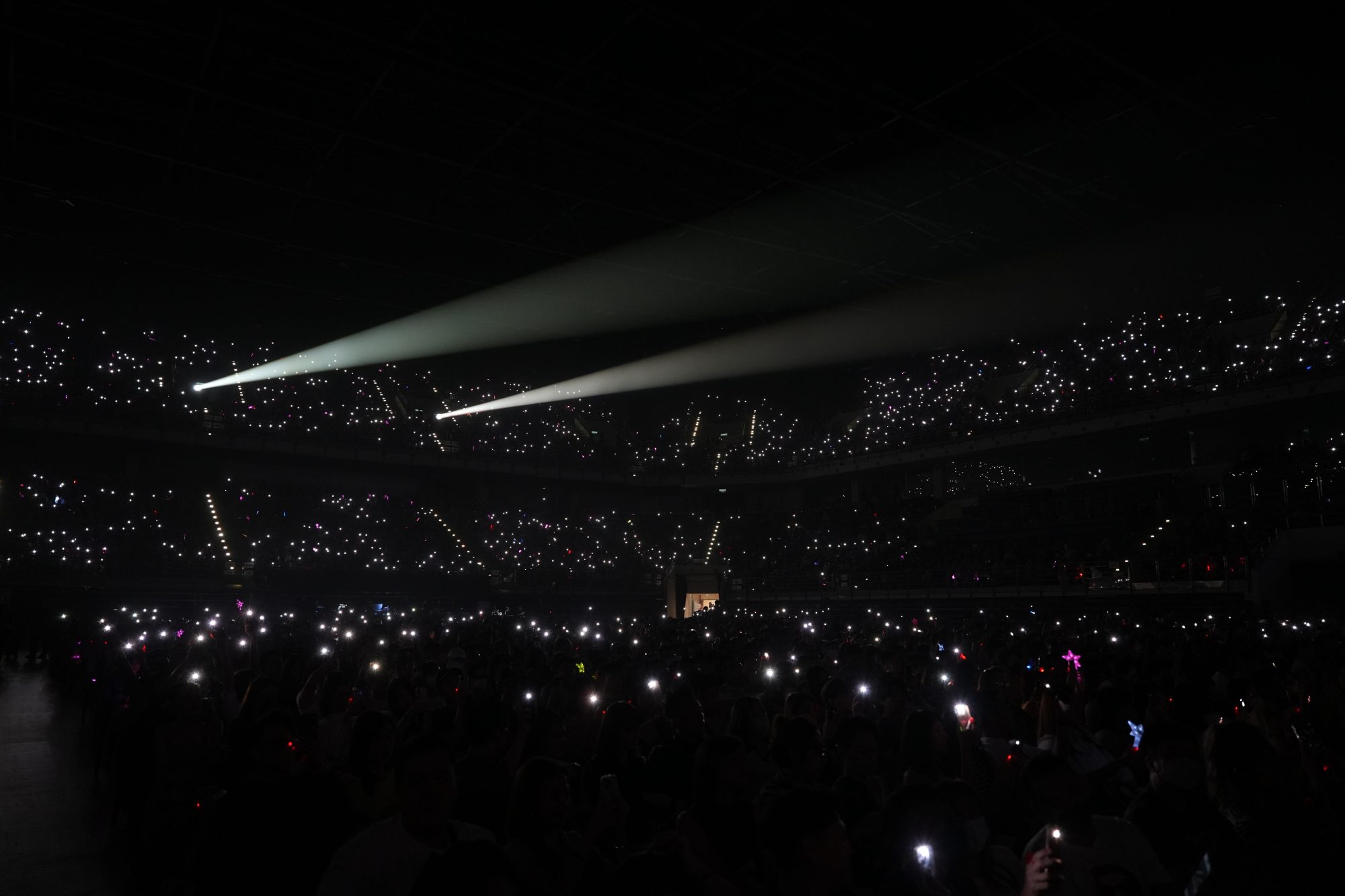 在A-Lin演唱《有一种悲伤》时,全场粉丝亮起手机灯成为星空,非常漂亮。