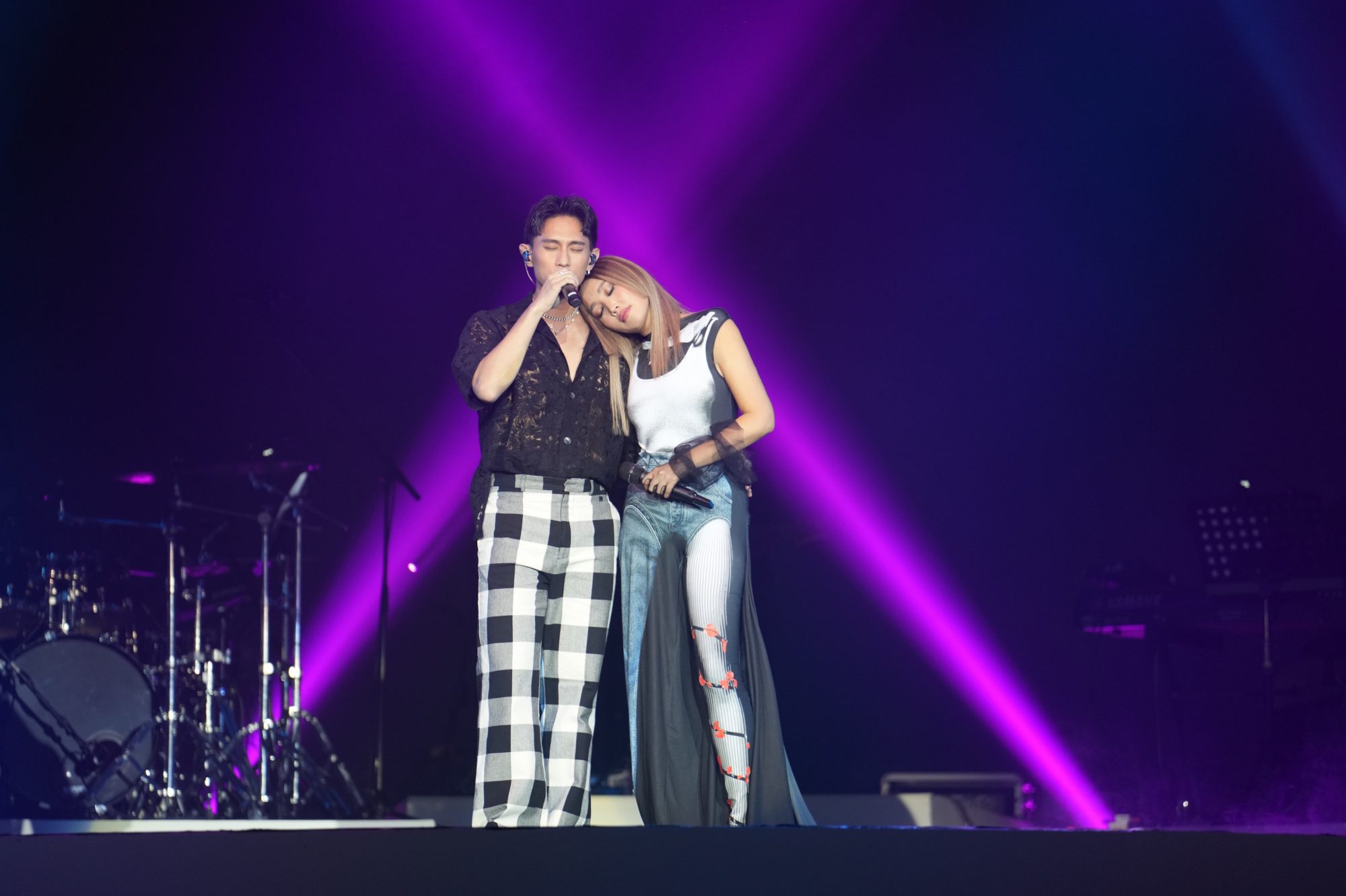 【演唱会】台湾“天生歌姬”A-Lin(黄丽玲)终于来到大马开唱,怎料在跟师弟柏霖合唱后,突然发生小意外,她的高跟鞋竟然卡在舞台机关细缝而断掉,柏霖当下帮忙蹲下拔出来!在安哥演唱超经典《给我一个理由忘记》时,掀起全场大合唱,她被歌迷们感动到直接喷泪。