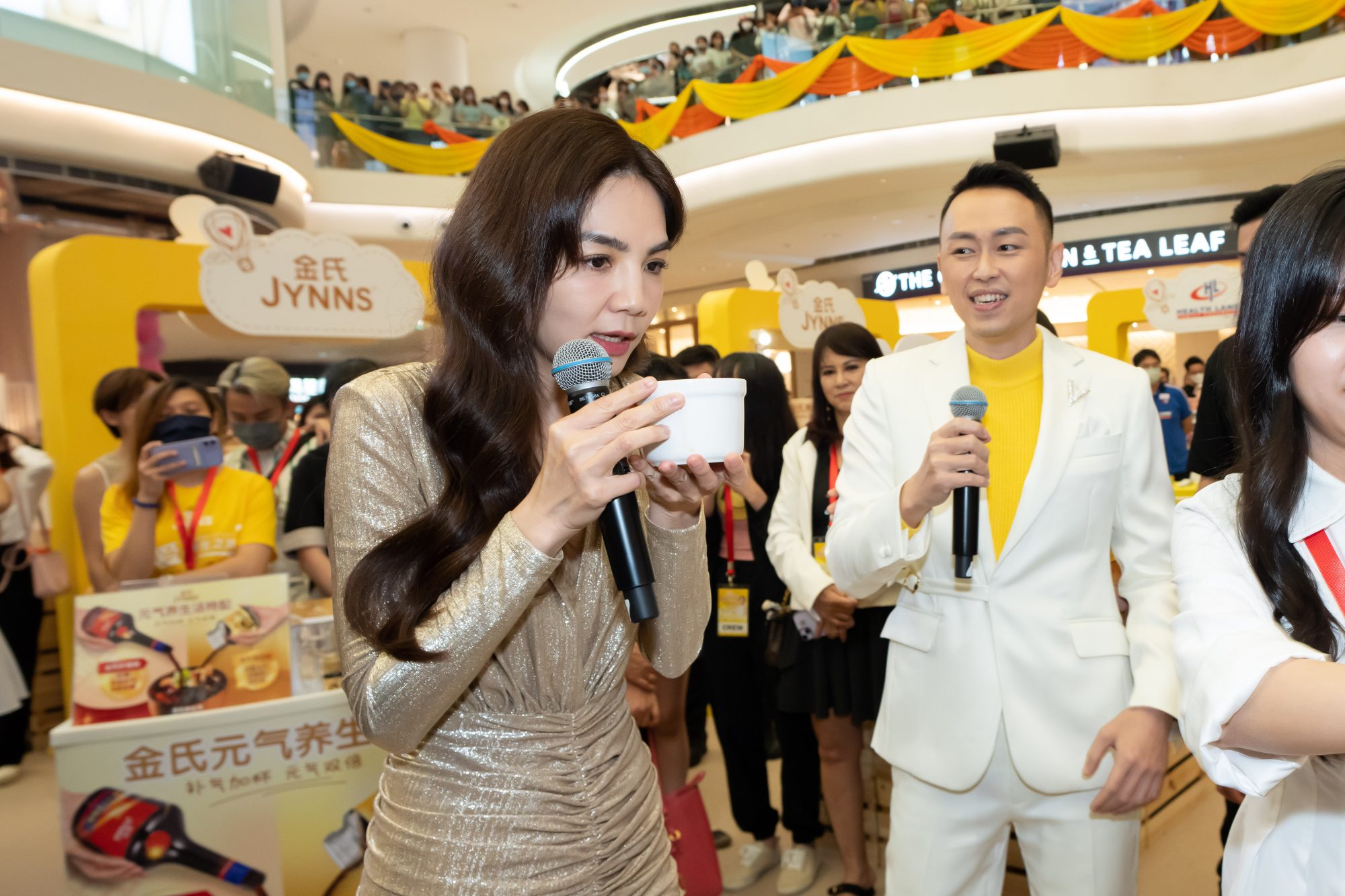 Ella在创办人兼执行董事Alann的陪同下,在活动现场品尝JYNNS产品。
