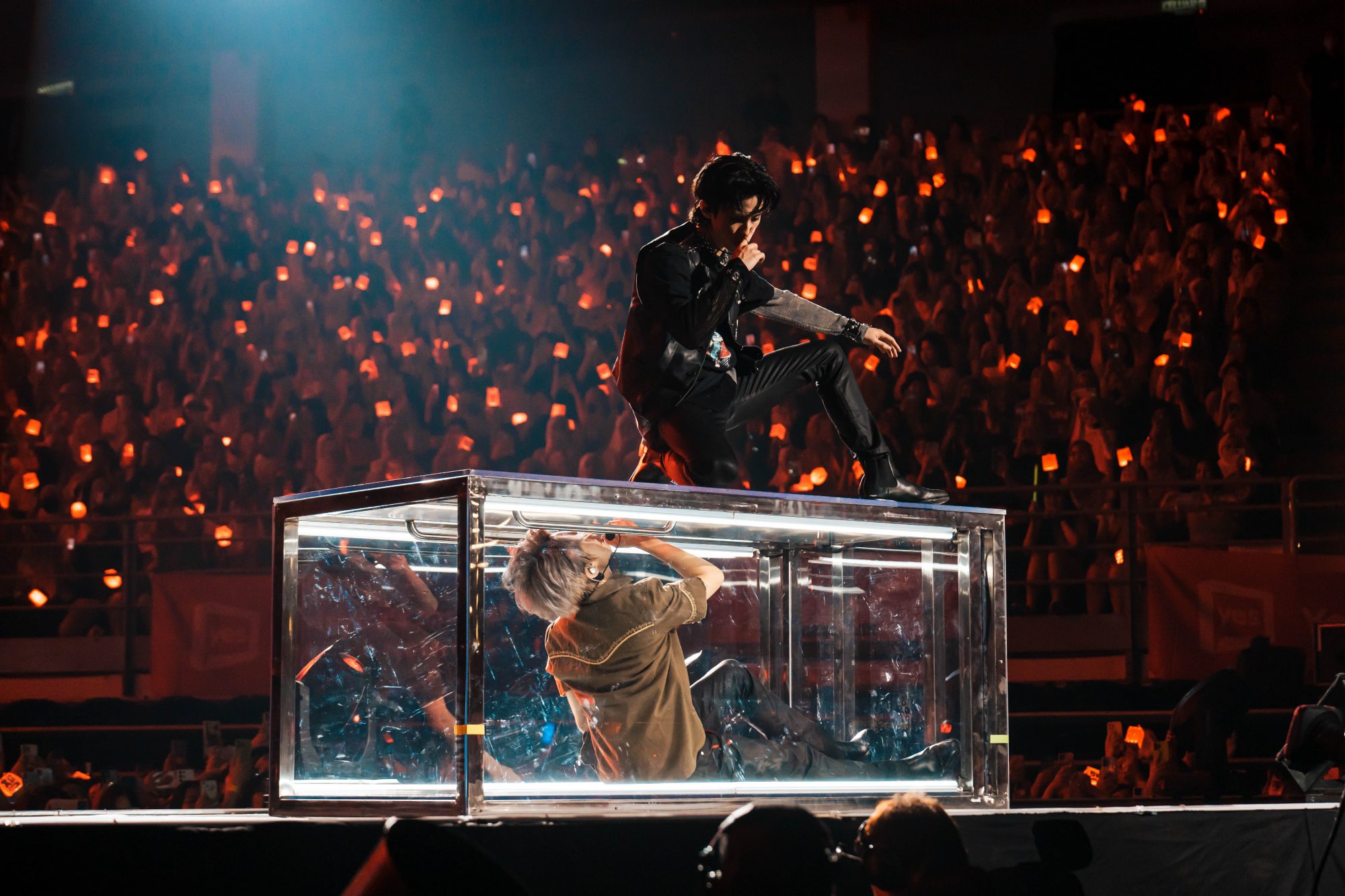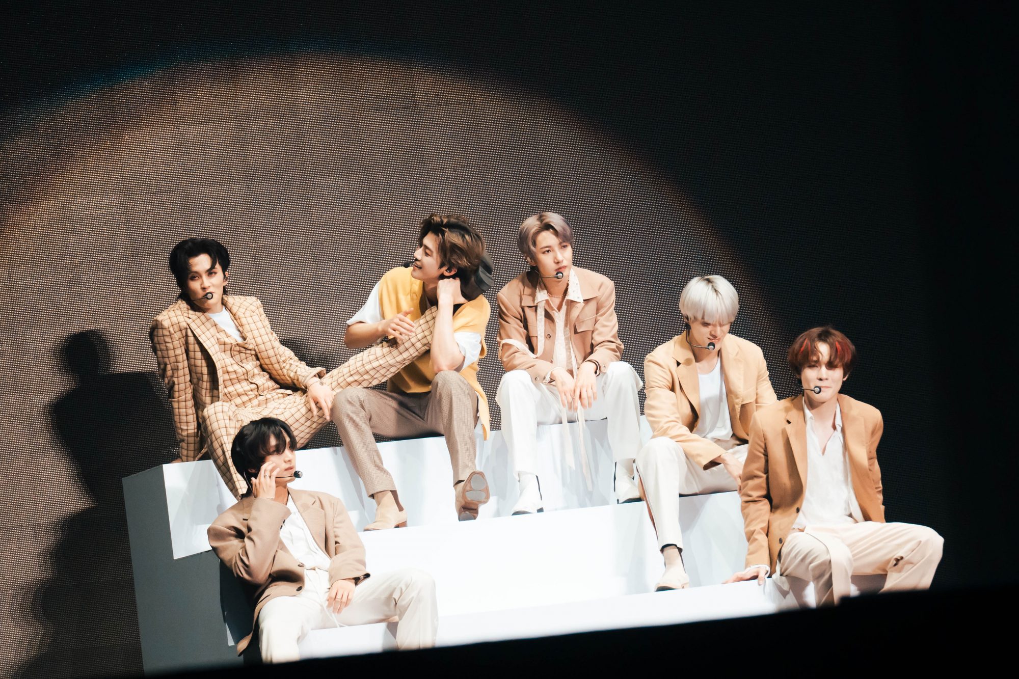 7子演绎多首歌曲都show出撩人又帅气舞蹈、也不时比yeah、送爱心,送飞吻成员脱外套等,每个动作都能引起歌迷的疯狂高喊,气氛一直处于高涨状态。在演唱《Bye my First》等多首歌曲,他们都展现了之间超要好的友情,互动可爱又搞笑,更是掀起全场尖叫。全场舞台和灯光也让大家眼前一亮,看得出用心制作,尤其成员们在透明玻璃箱道具上跳舞,每个瞬间都很吸睛,也让全场尖叫连连。
