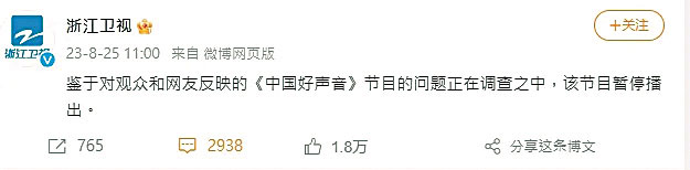 浙江卫视25日正式宣布“鉴于对观众和网友反应的《中国好声音》节目的问题正在调查之中,该节目暂停播出。”