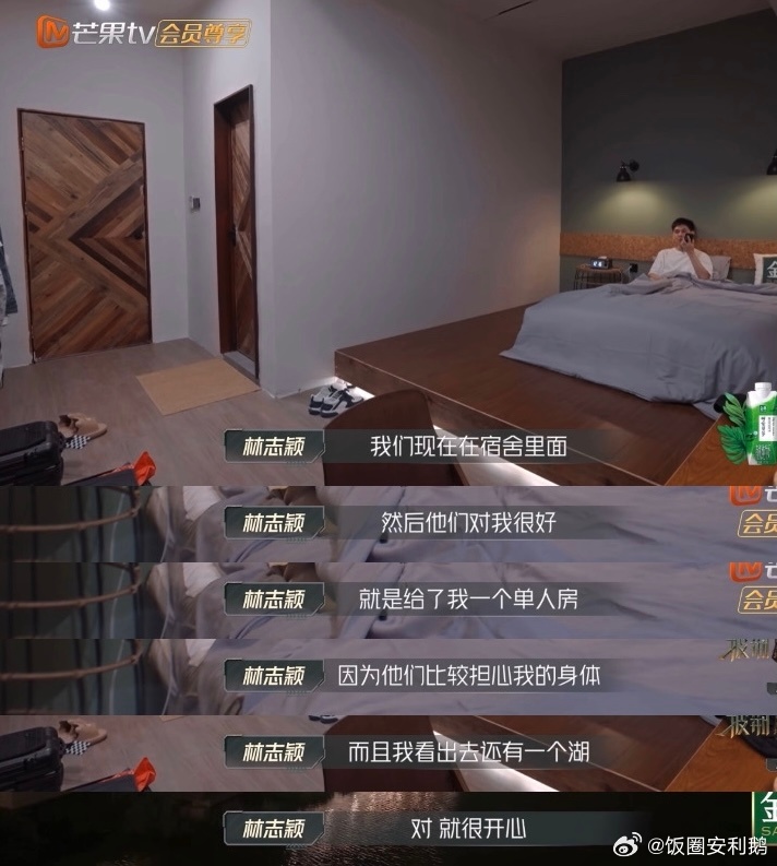 不过,在所有选手当中,只有林志颖不需要跟任何人竞争,刚进入宿舍就被安排了一间单人房,而扣除的火力值则是以其它房间的平均值计算。他进房后打电话给家人报平安,也高兴表示:“他们对我很好,给了我一个单人房,因为他们比较担心我的身体。而且我看出去还有一个湖!很开心,现场气氛都很棒。”