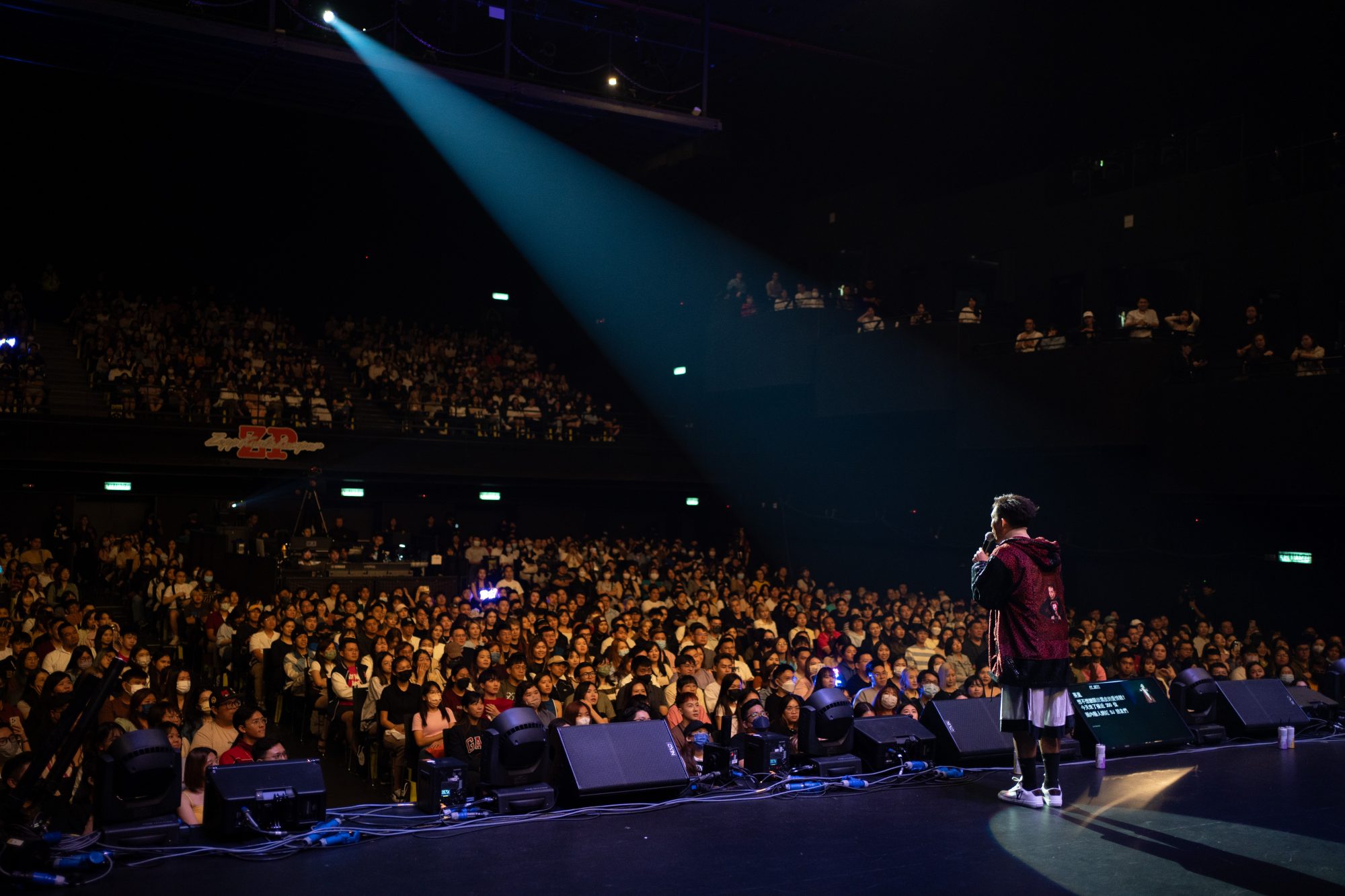 培永脱口秀首演就吸引了1300名观众朝圣,当中更有超过200位艺人、DJ及网红前来支持。他拳手造型登场,一上台就派福利,不时扯开外套小秀胸肌,引来喝彩连连,大家狂喊“脱衣服”,他也很大方把外套脱掉,但没想到只是矽胶(Silicone)假腹肌,让全场小失望了。
