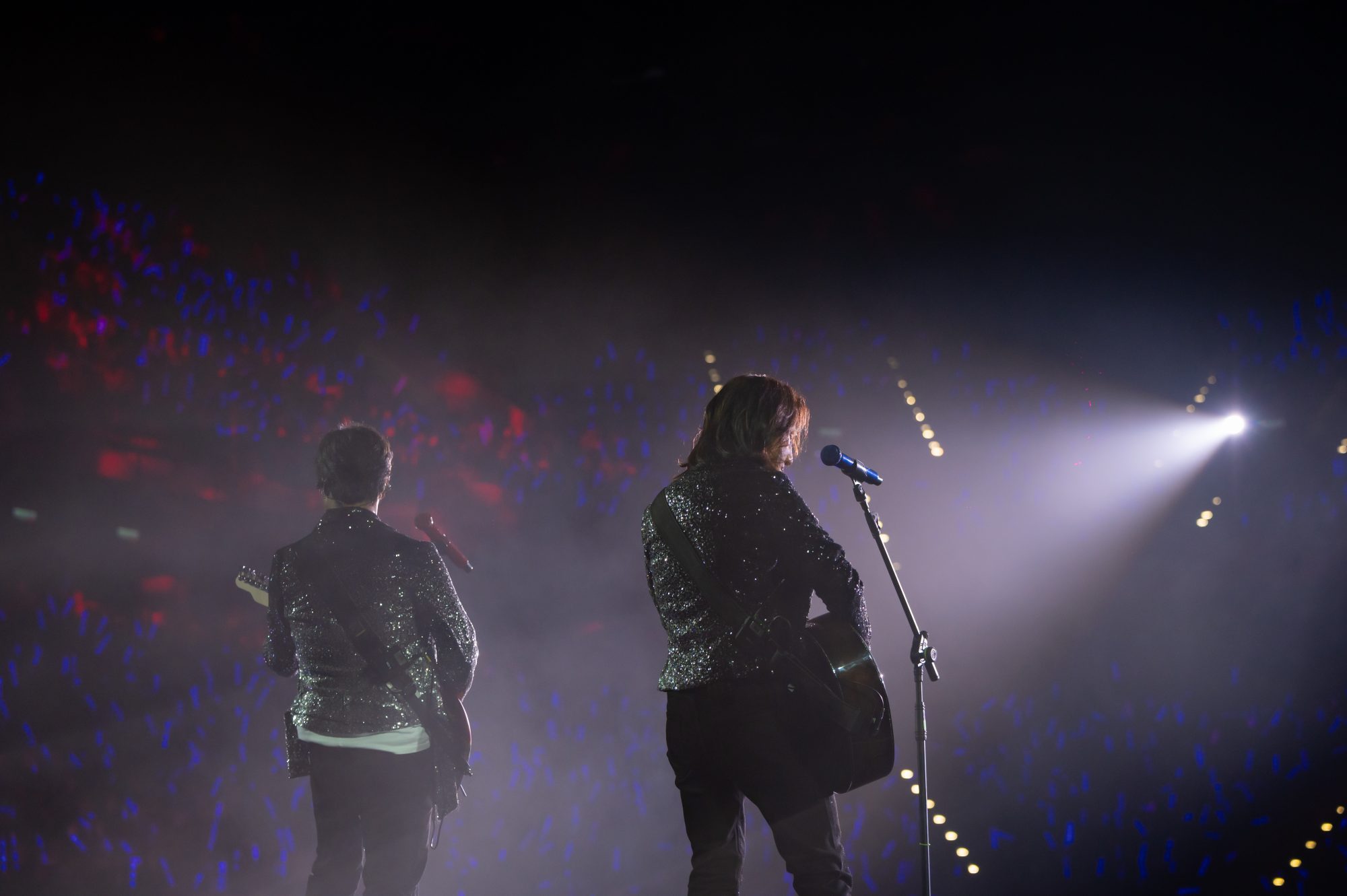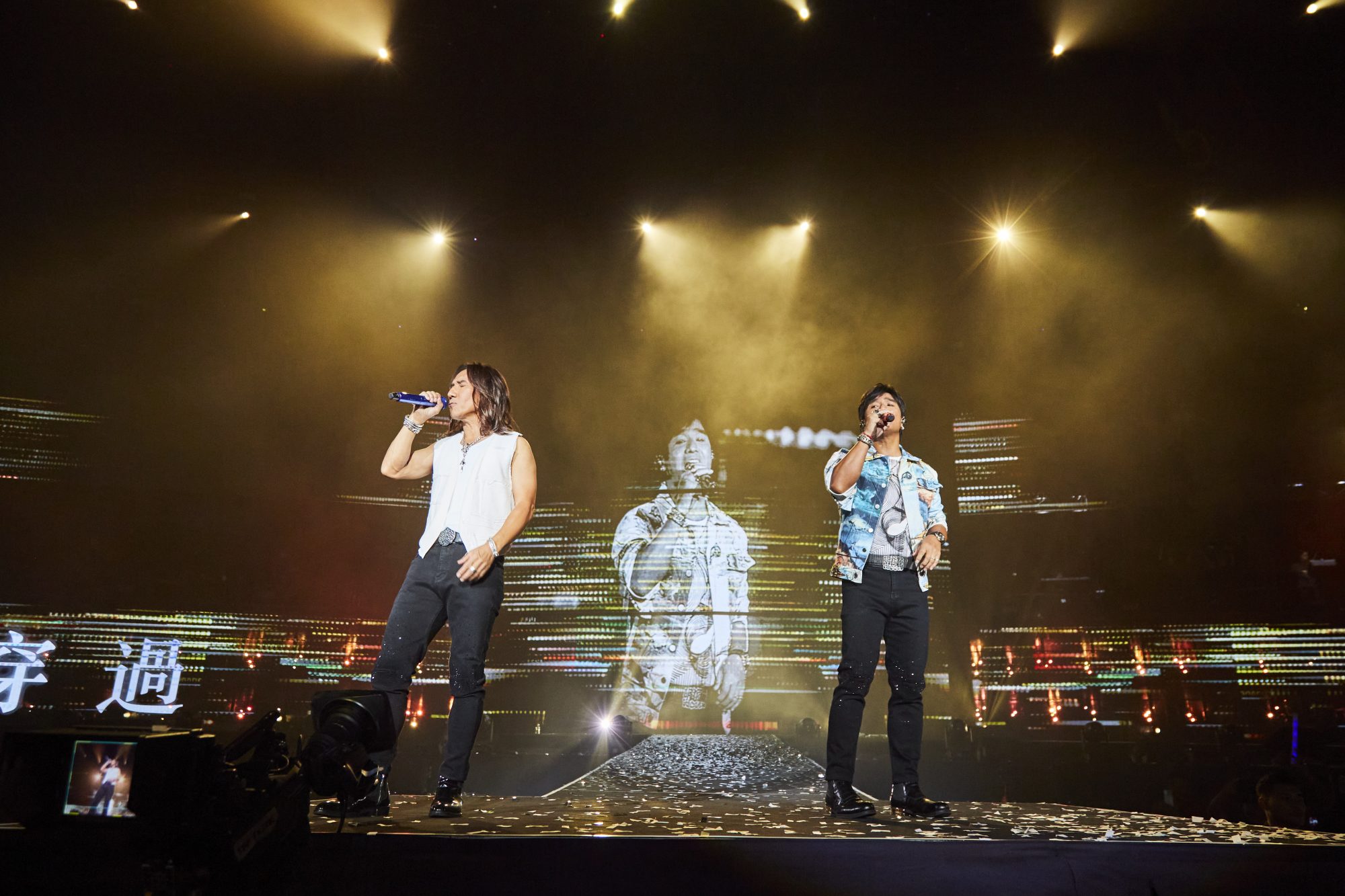 在演唱经典歌曲时,勾起了他们许多回忆,他们提到第一次发专辑来⻢举办首场签唱会时,现场只有7名粉丝支持,为了拖延时间,两人还故意将签名的速度拖慢,笑翻全场!他们说:“那时候和熊天平一起跑宣传,我们在百货公司办签名会,整栋商场都是人,心想我们有那么红吗,开始为歌迷签名时,只有7位歌迷,接着熊天平出场,现场出现人潮,原来大家都是看他的。”他们感动表示如今开唱全场爆满,非常感动。