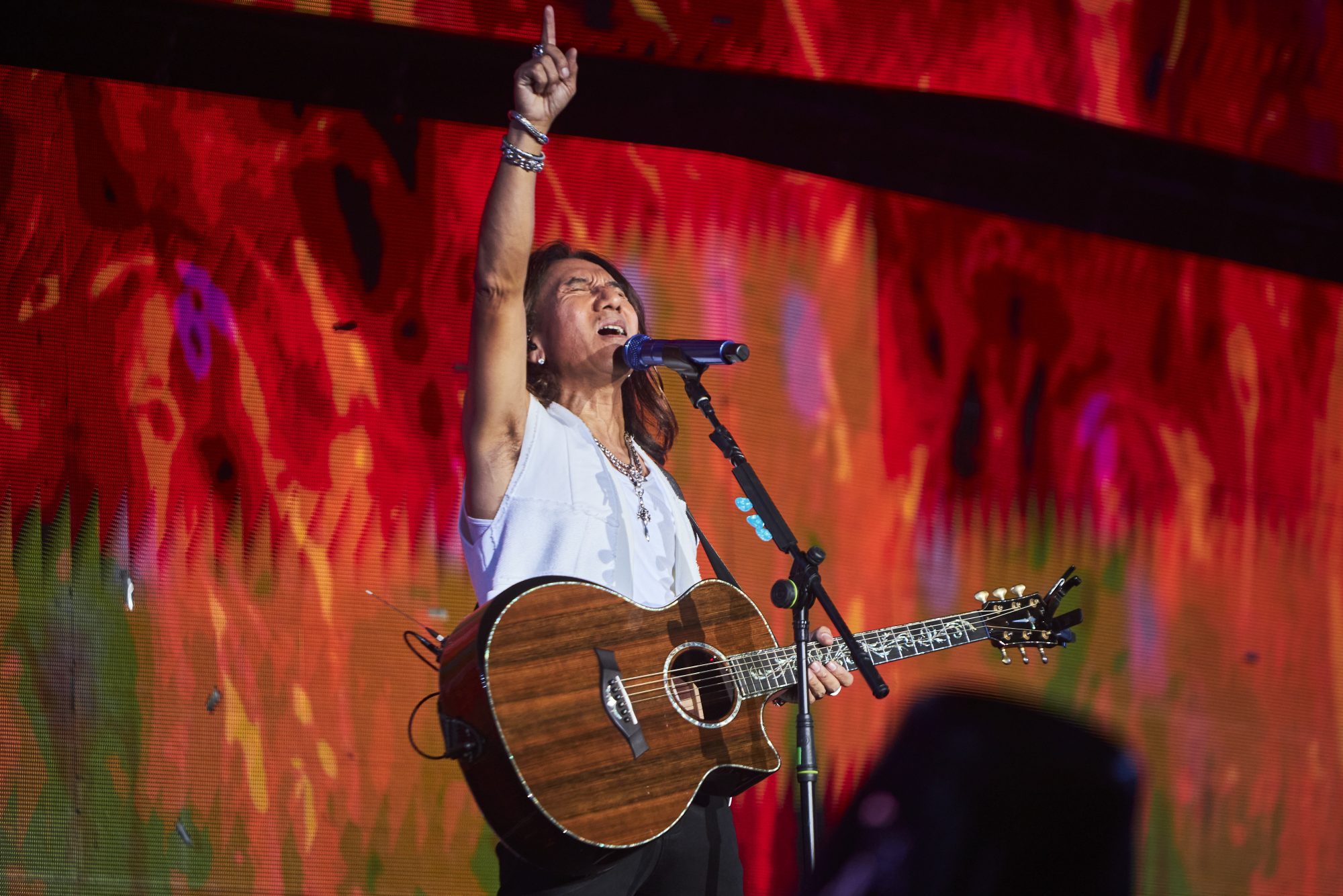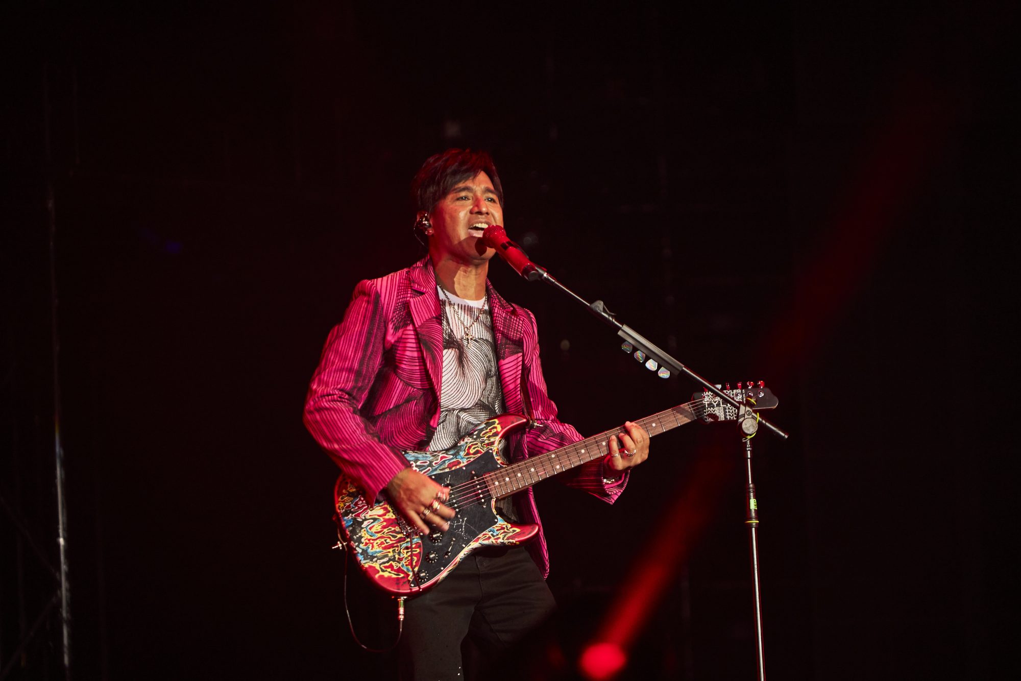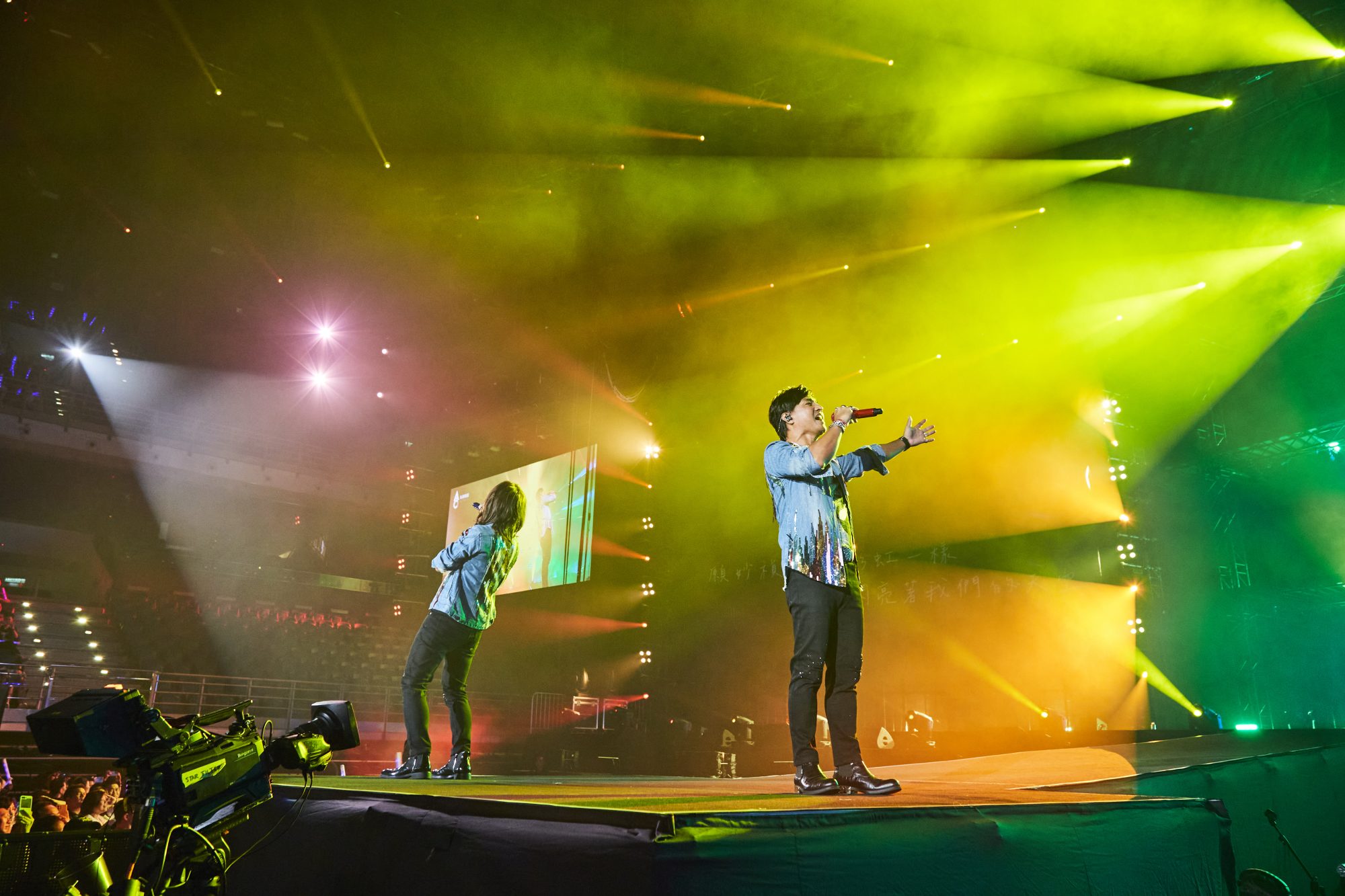 他们甫开场便一口气带来《摇滚区》、《I’ll be back》以及《继续转动》三首《动力十足》的摇滚歌曲,让全场情绪瞬间沸腾。尤秋兴随即打趣地提醒,由于这是一场以“爱”为主题的演唱会,选曲方面较多情歌,所以开场的这三首歌曲主要是为了“吓一吓大家”,让大家记得动力火⻋是个摇滚歌手,引起全场爆笑。