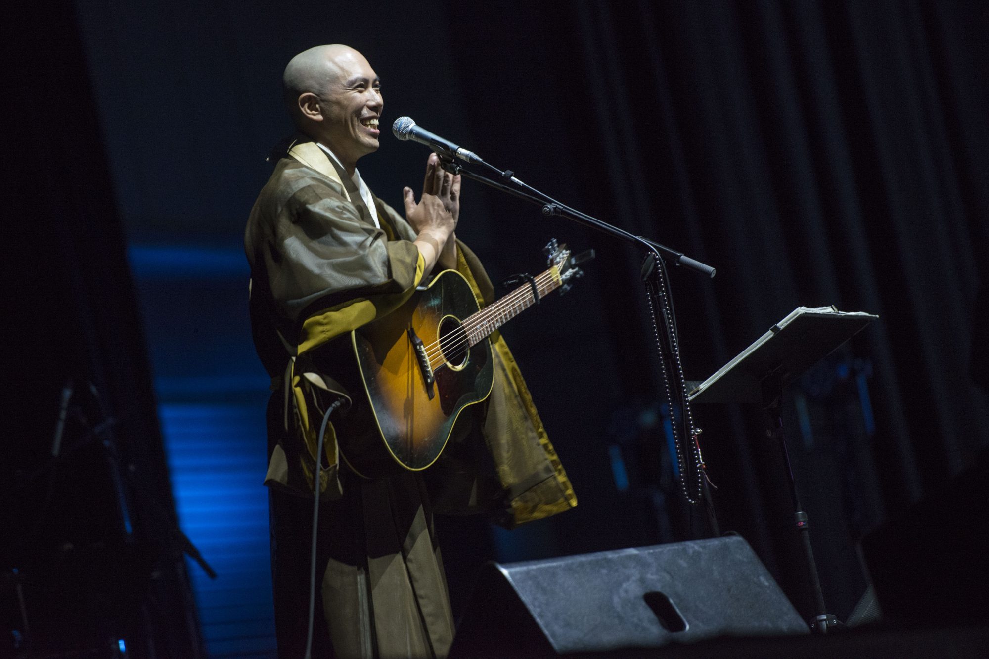 药师寺宽邦认为, 在不同时代、不同⽂化, 我们可以以不同的⽅式表达和体验佛法,“我相信⾳乐和佛法是共通的, 都能够为⼤众带来希望和内⼼的平静。” 药师寺宽邦昨晚再度展现其独⼀无⼆的⾳乐才能和现场感染⼒, 透过⾳乐传递他的⼈⽣感悟, 为幸福和愿望⽽祈福。