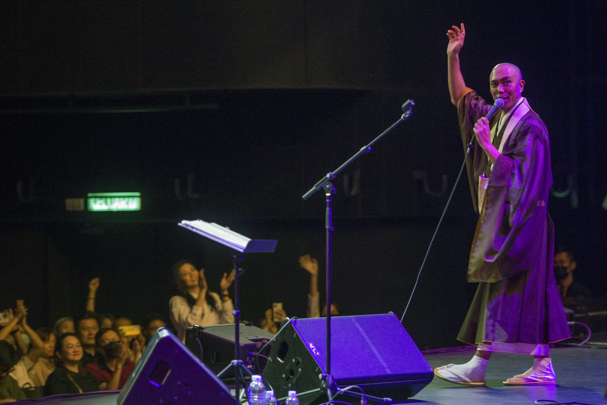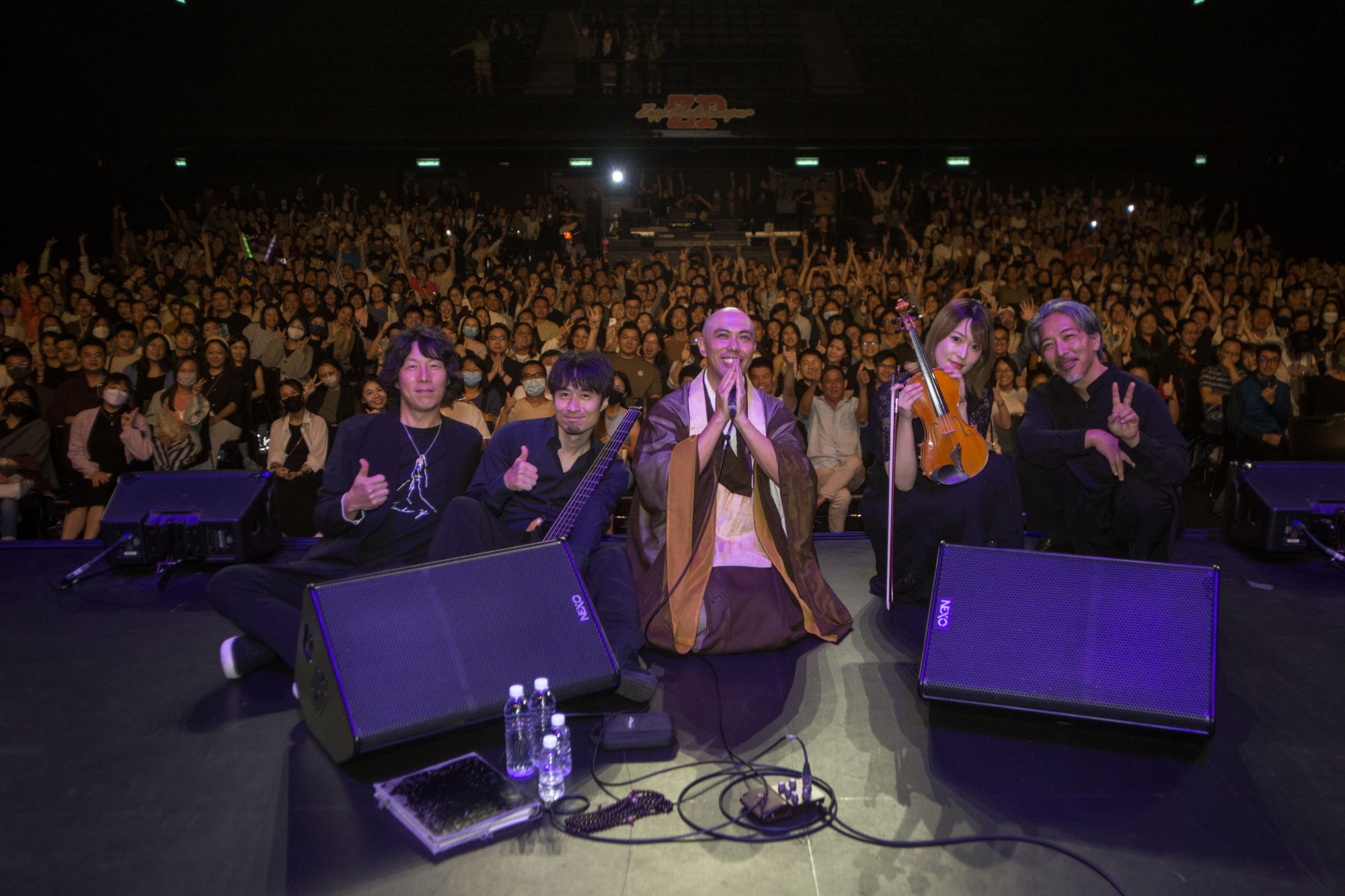 药师寺宽邦带来了全新专辑概念《福·愿》, 打造“法喜充满,佛乐着迷”的佛性⾳乐空间, 将他的“⼈⽣视⾓”通过⾳乐分享给现场横跨各年龄层的观众。昨晚,药师寺宽邦会带着吉他与完整的乐团, 搭配专业的舞台灯光⾳响, 以宣扬佛法的姿态再度出现在⼤⻢乐迷的⾯前。他也带来自了创曲, 以电音摇滚演出风格透过他的音乐创作以达到疗愈身心的效果。