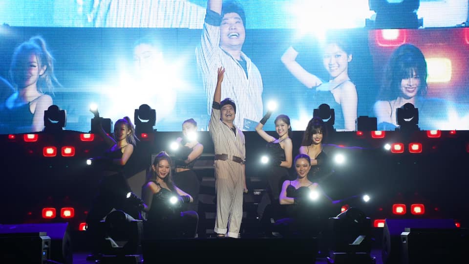 三个合唱多首经典串烧歌曲之余,也各自扮演大咖港星唱跳,李思捷在其中一首歌随机选了以为幸运女粉丝上台合唱现代爱情故事,他跟女粉丝亲密牵手搭肩,羡煞其他粉丝。