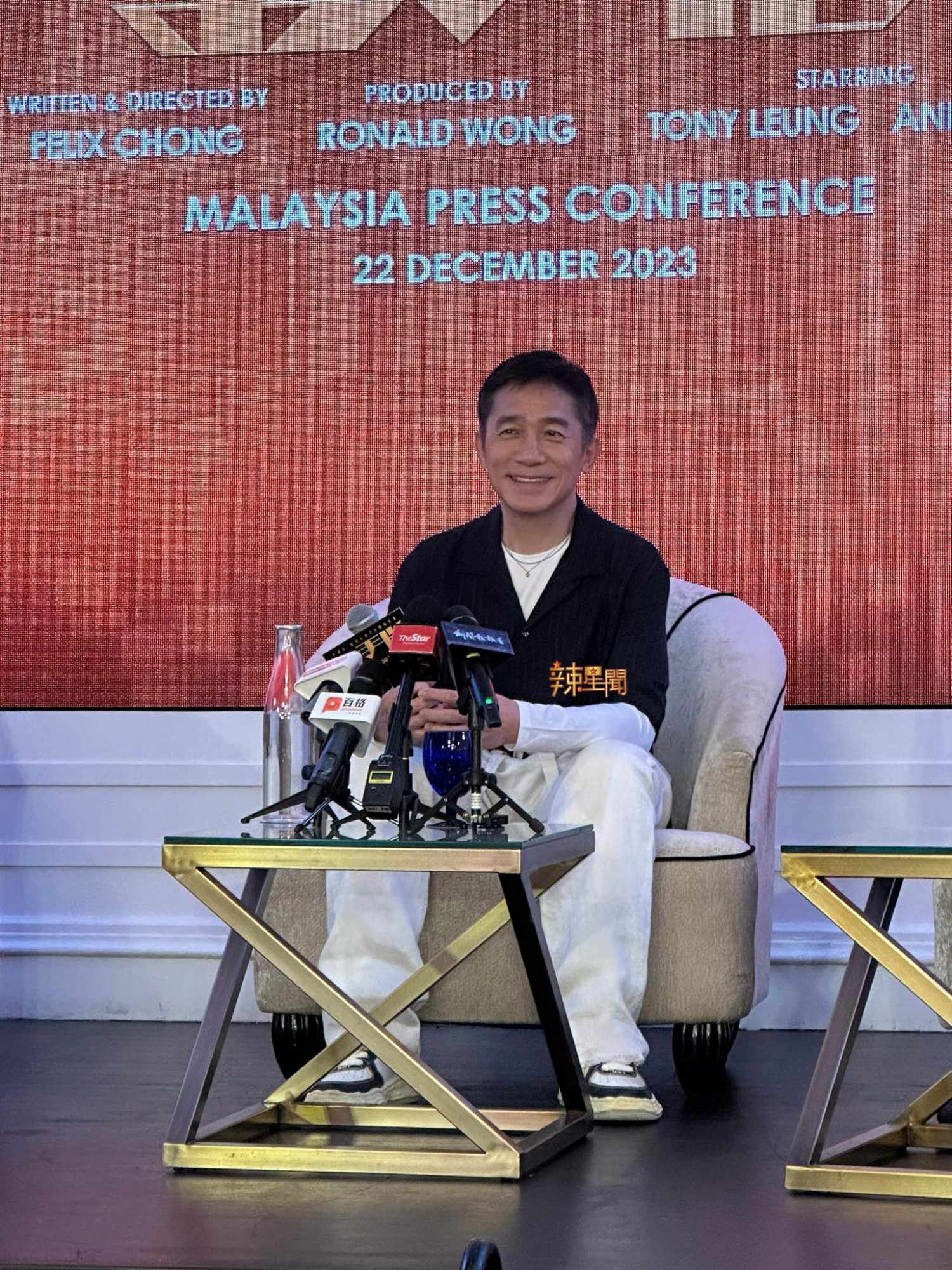 香港新电影《金手指》即将于12月30日在全马上映,主角之一梁朝伟、导演兼编剧庄文强、监制黄斌22日来马宣传。记者会上,梁朝伟回忆80年代常来马,“这次回来感觉像回到熟悉的地方,看到很多熟悉的朋友,有一种亲切感。”