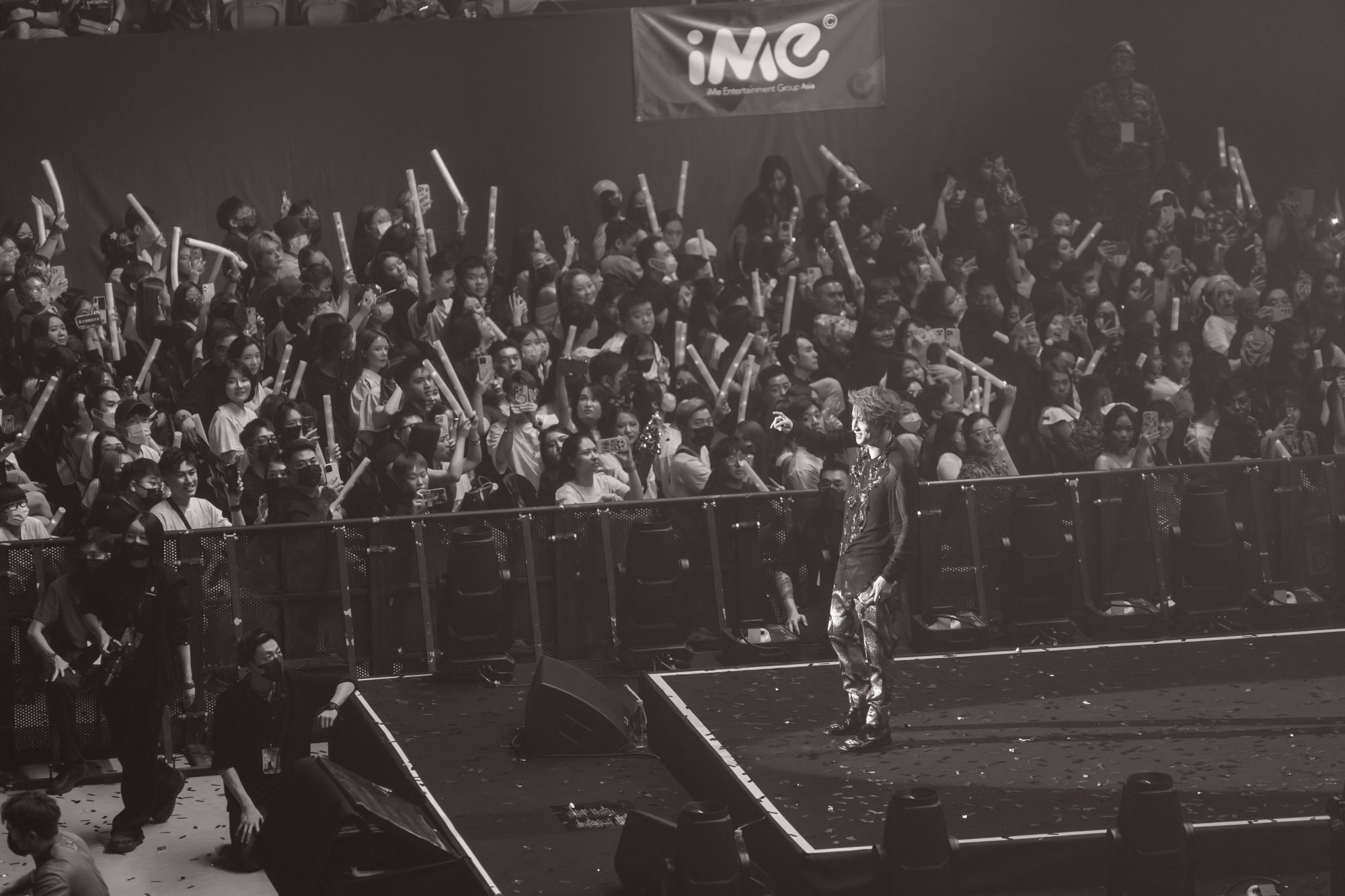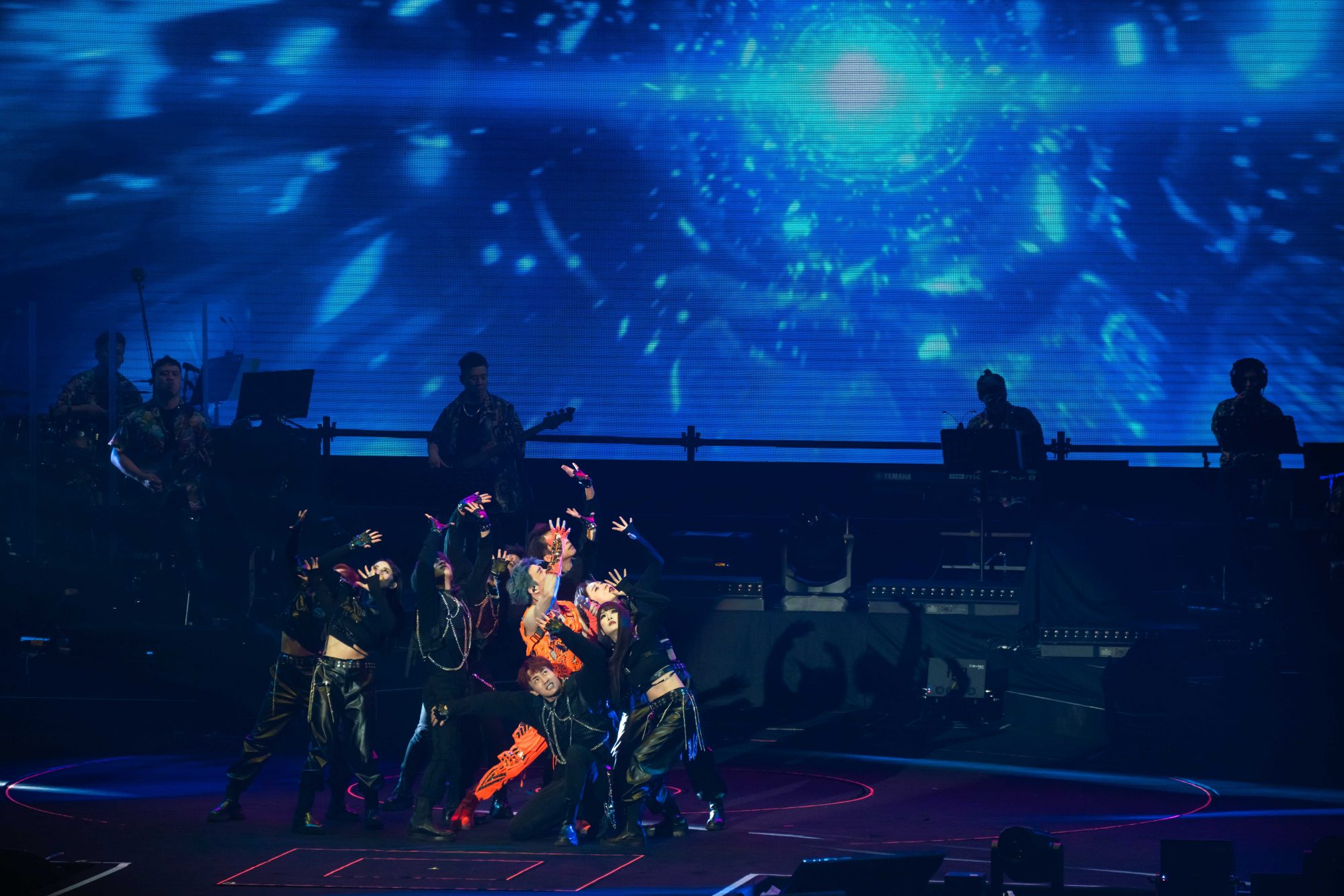 其中一part大荧幕没有画面,全场耍他喊“退票”,因海外场歌迷也是这“操作”,让他笑说早预料会这样!之后配合地球即将毁灭的剧情,荧幕上出现Axiata Arena场外被火烧的画面,因为是特效,大家都笑翻,他就喊大家一起入戏,“自己买的票,投入少少ok!”